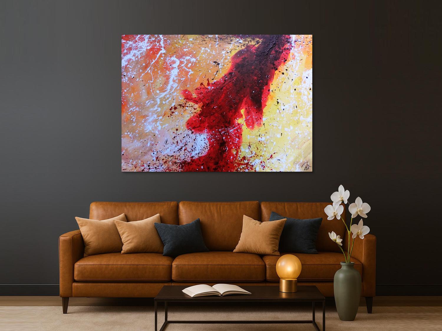 Abstraktes Gemälde auf Leinwand Abstraktes Acrylbild sehr modern in rot weiß schwarz gelb warme Farben in 140x180cm von Alex Zerr