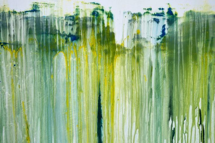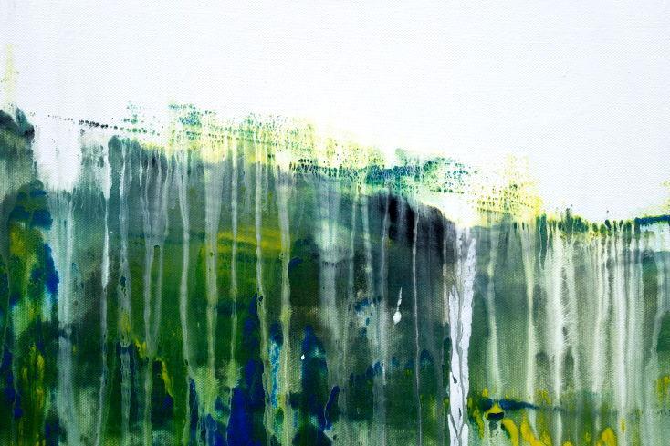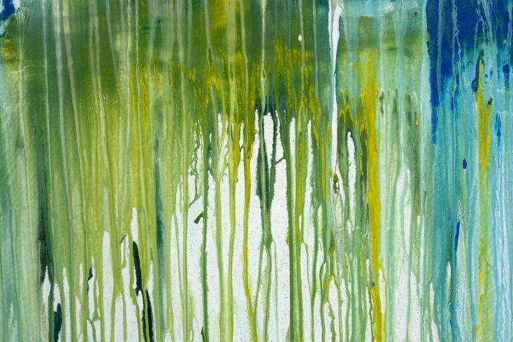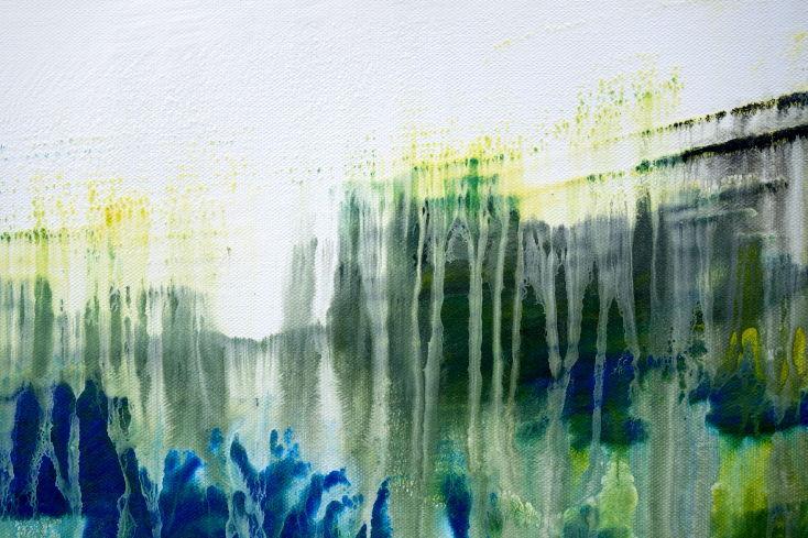Abstraktes Acrylbild sehr modern in weiß gelb grüb blau Mischtechnik zeitgenössisch