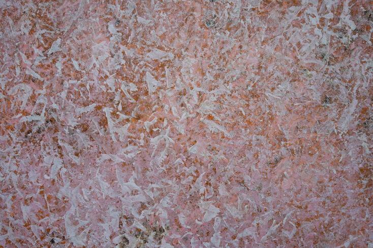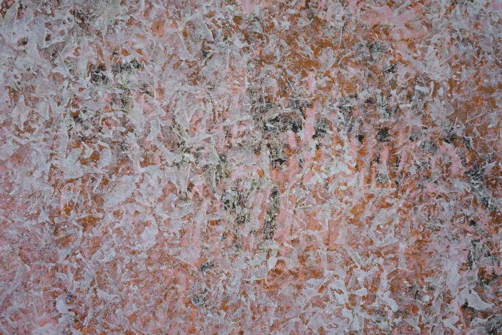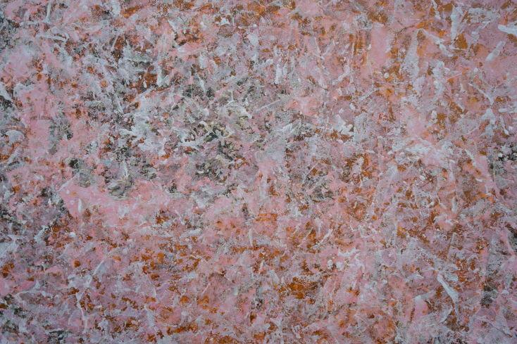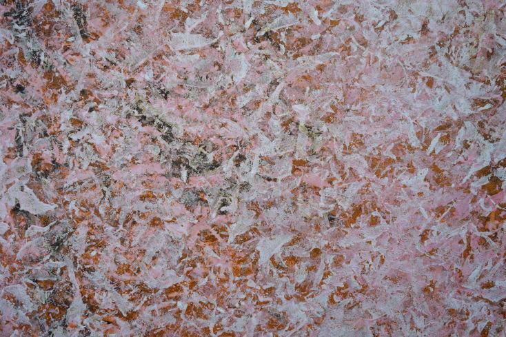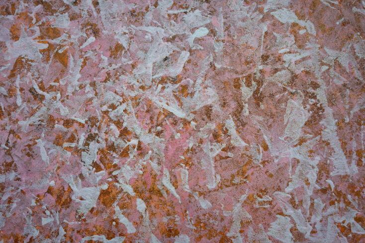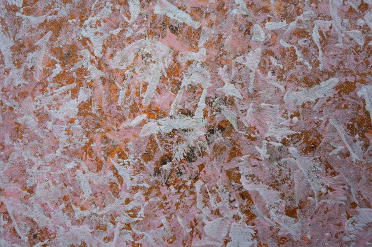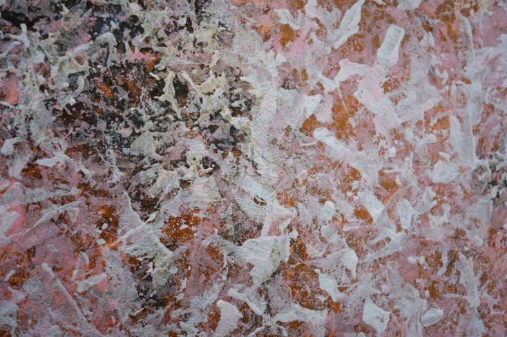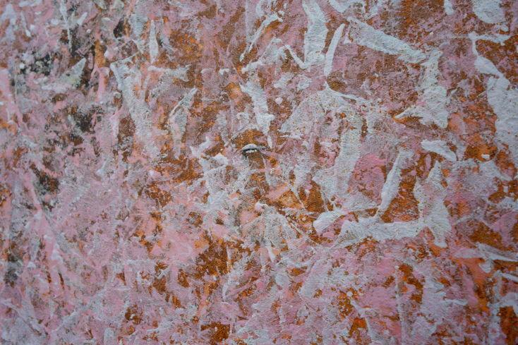 Abstraktes Acrylbild sehr modern schlicht altrosa und weiß auf Rost zeitgenössisch