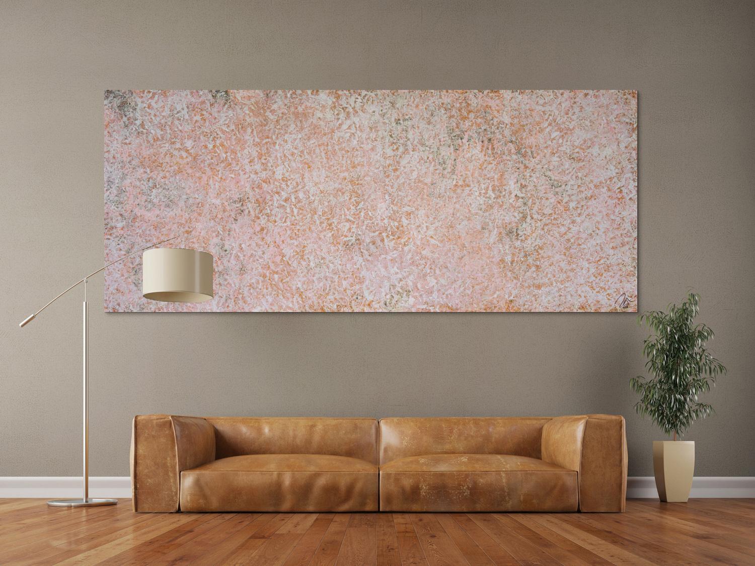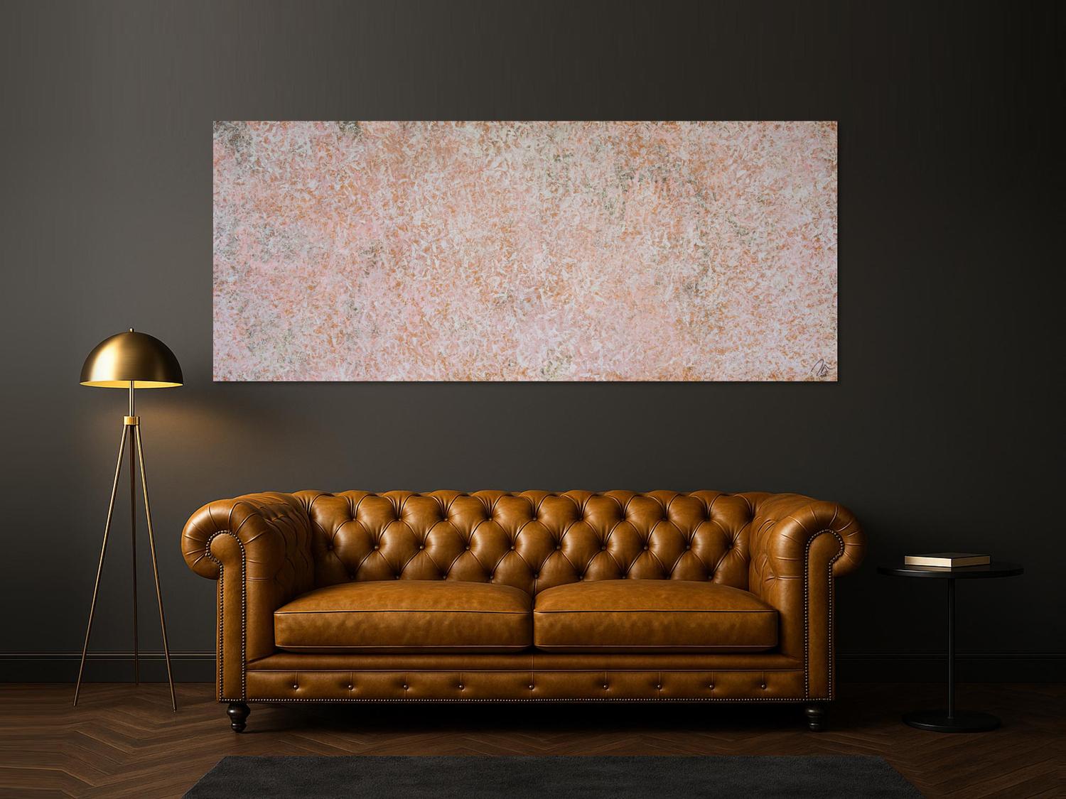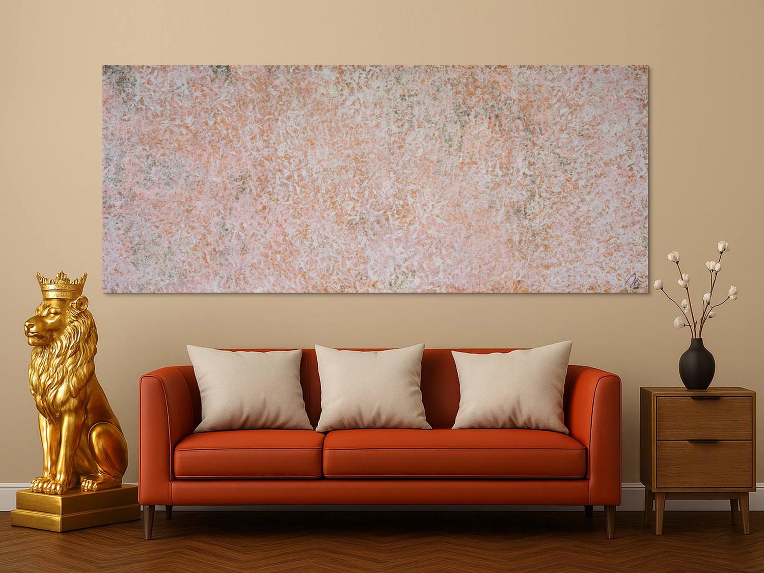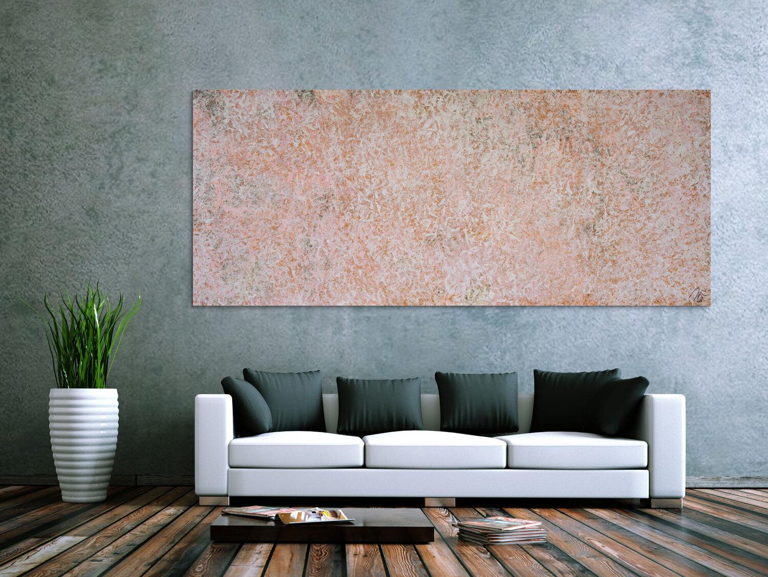 Abstraktes Gemälde auf Leinwand Abstraktes Acrylbild sehr modern schlicht altrosa und weiß auf Rost zeitgenössisch in 100x240cm von Alex Zerr