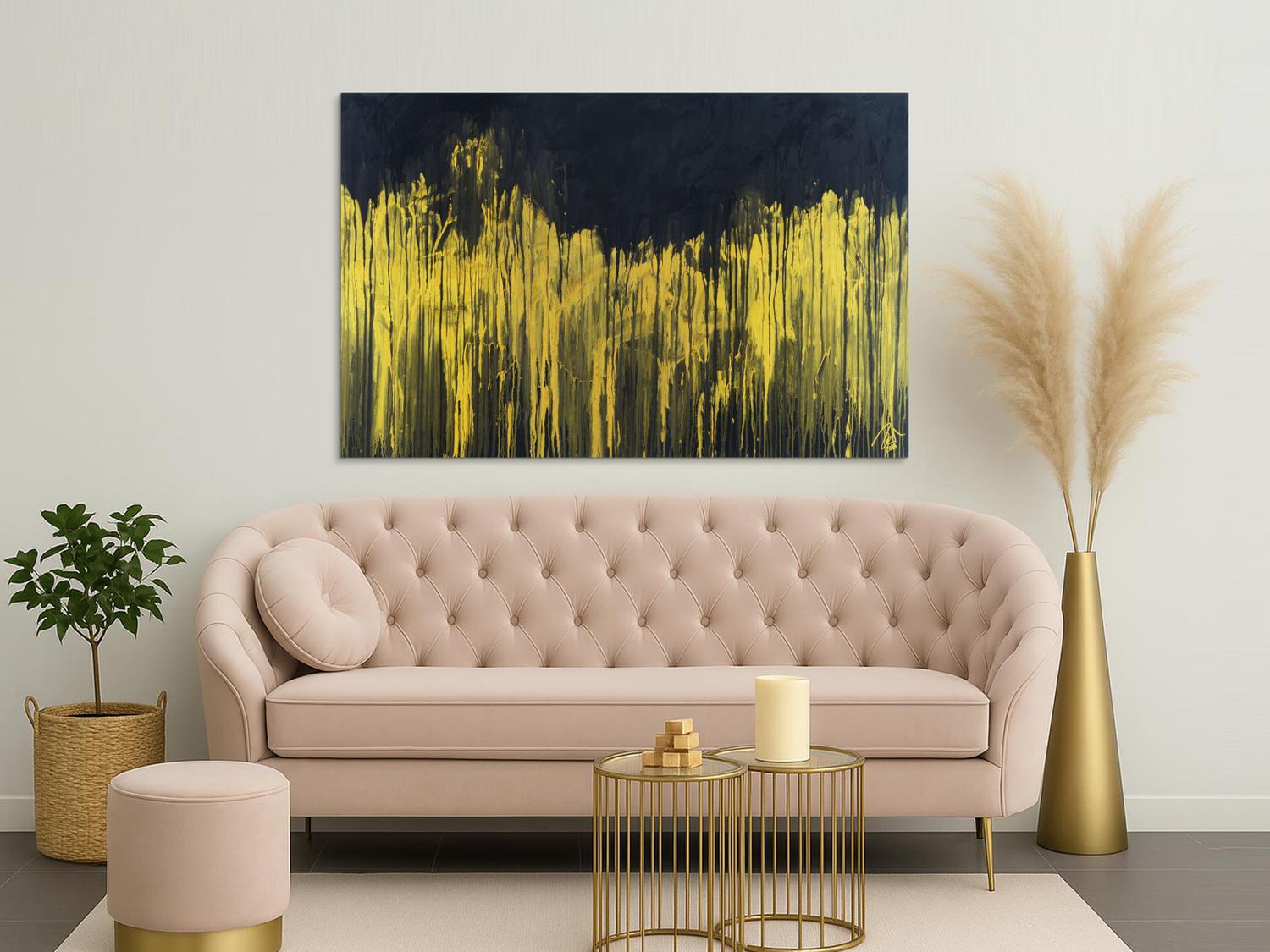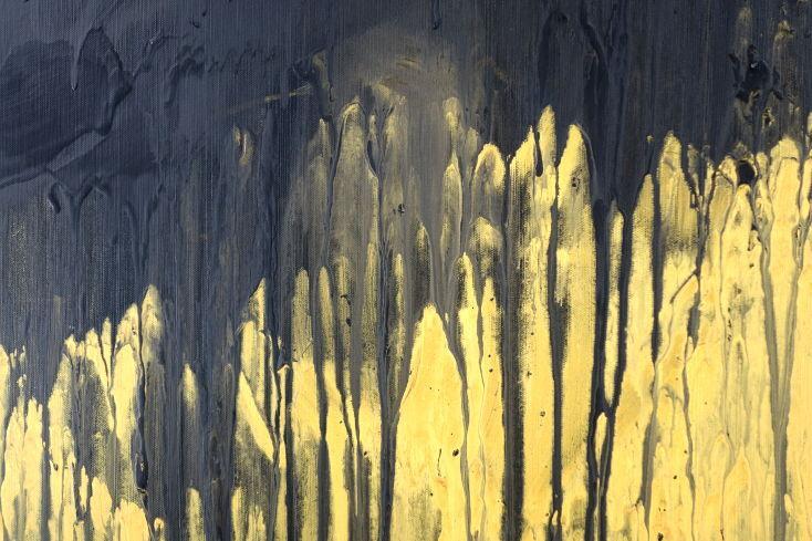 Abstraktes Acrylbild sehr modern schwarz und gold zeitgenössisch abstrakt expressionistisch extra dicker Rahmen 5cm