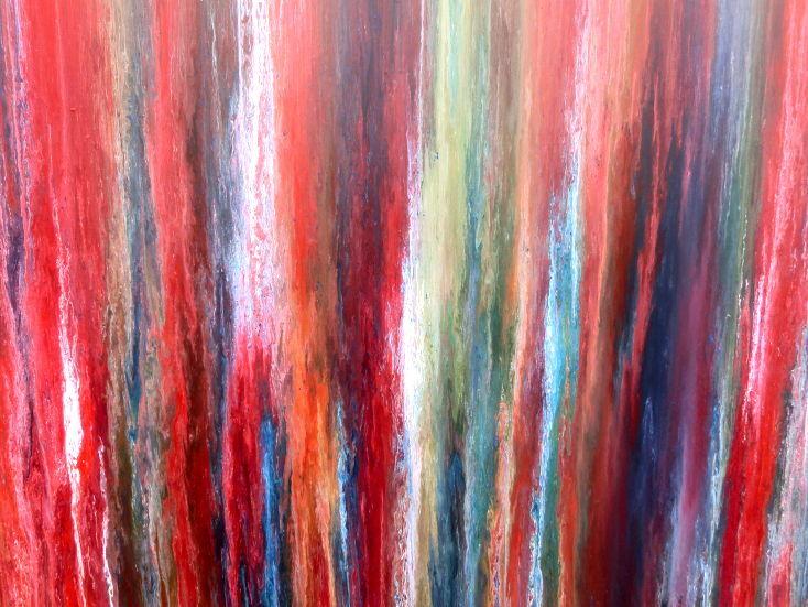 Dieses Werk ist wie alle meine Bilder: spontan entstanden, ganz intuitiv und ohne festes Konzept, und spiegelt oft meine momentane Stimmung wider wie auf der Leinwand festgehalten wurde.
