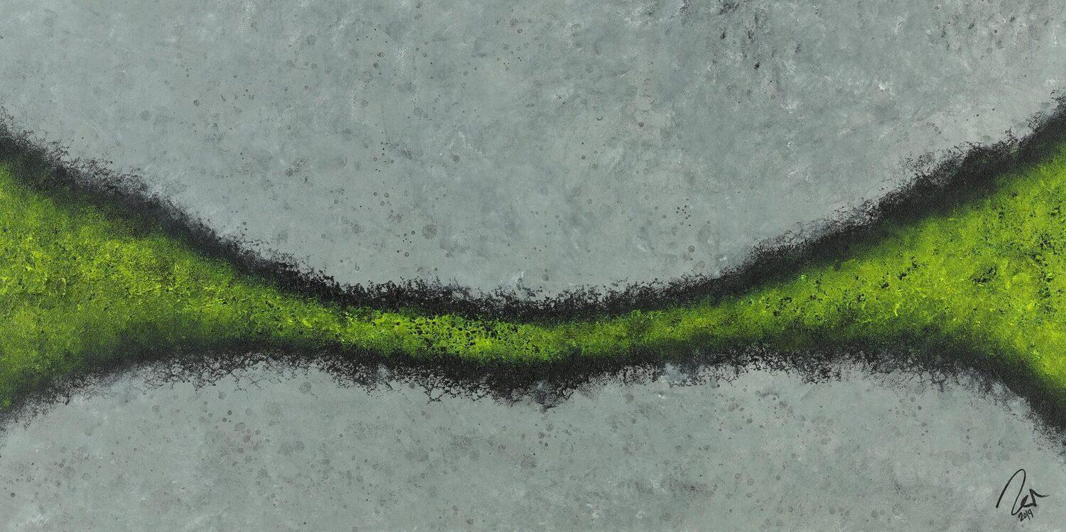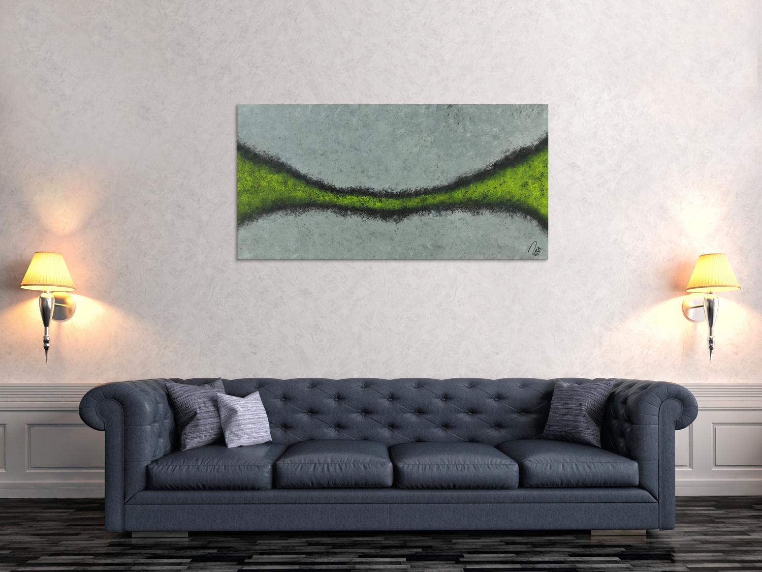 Abstraktes Gemälde auf Leinwand Abstraktes Acrylbild sehr modern zeitgenössisch grau gelb schwarz handgemalt mit feiner Struktur in 70x140cm von Alex Zerr