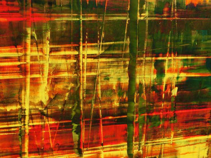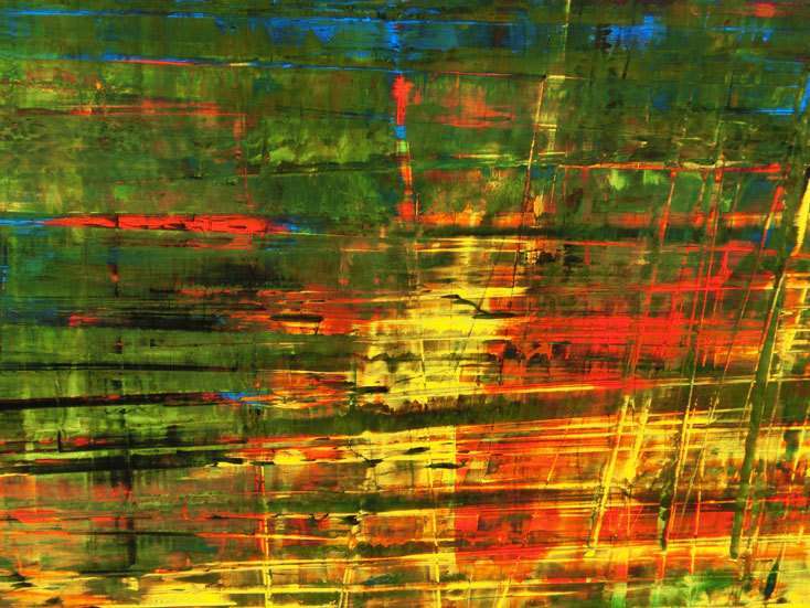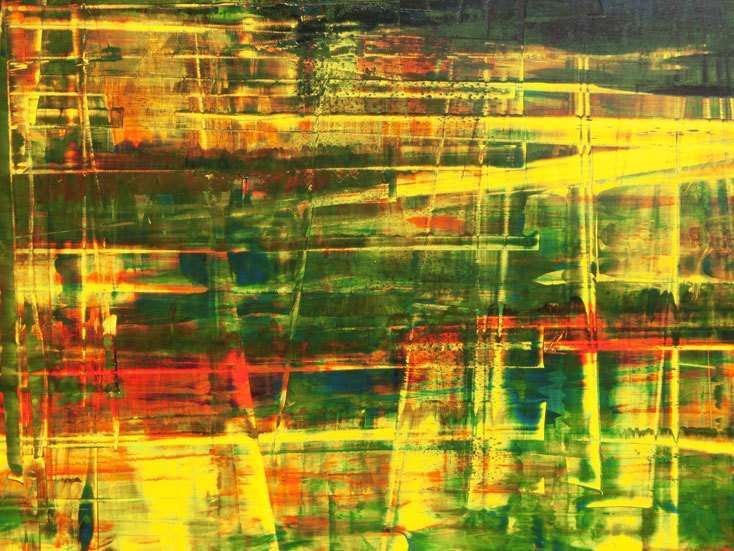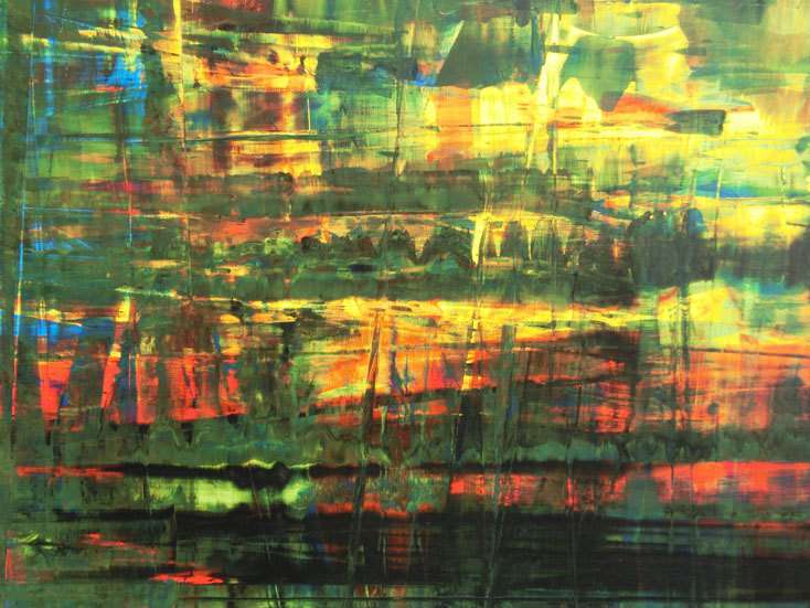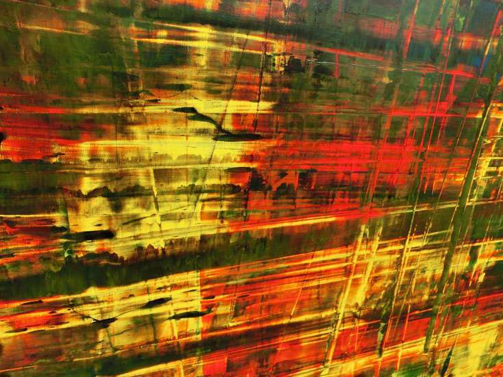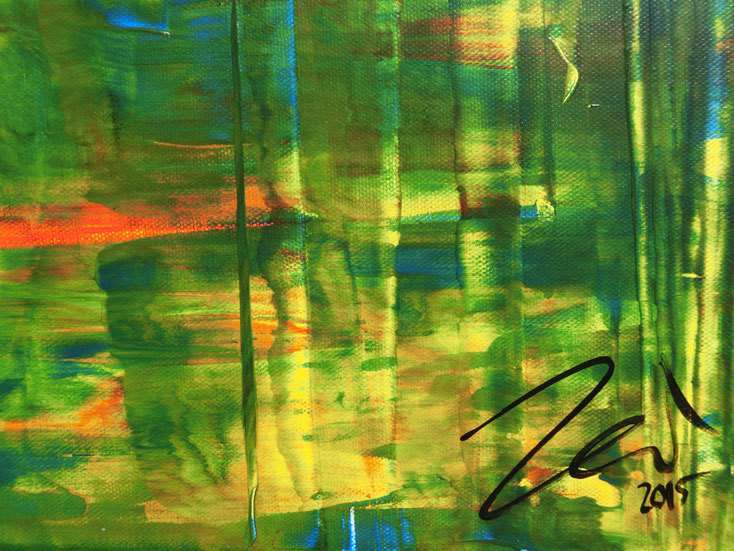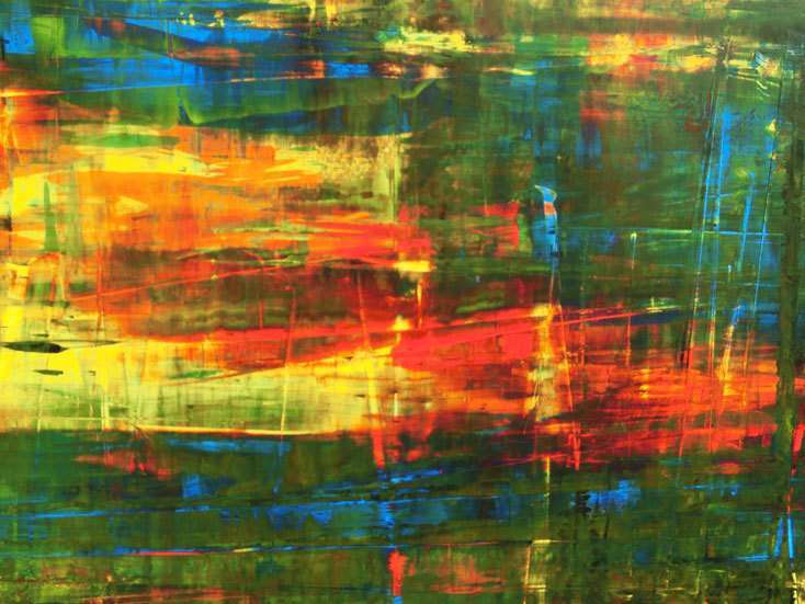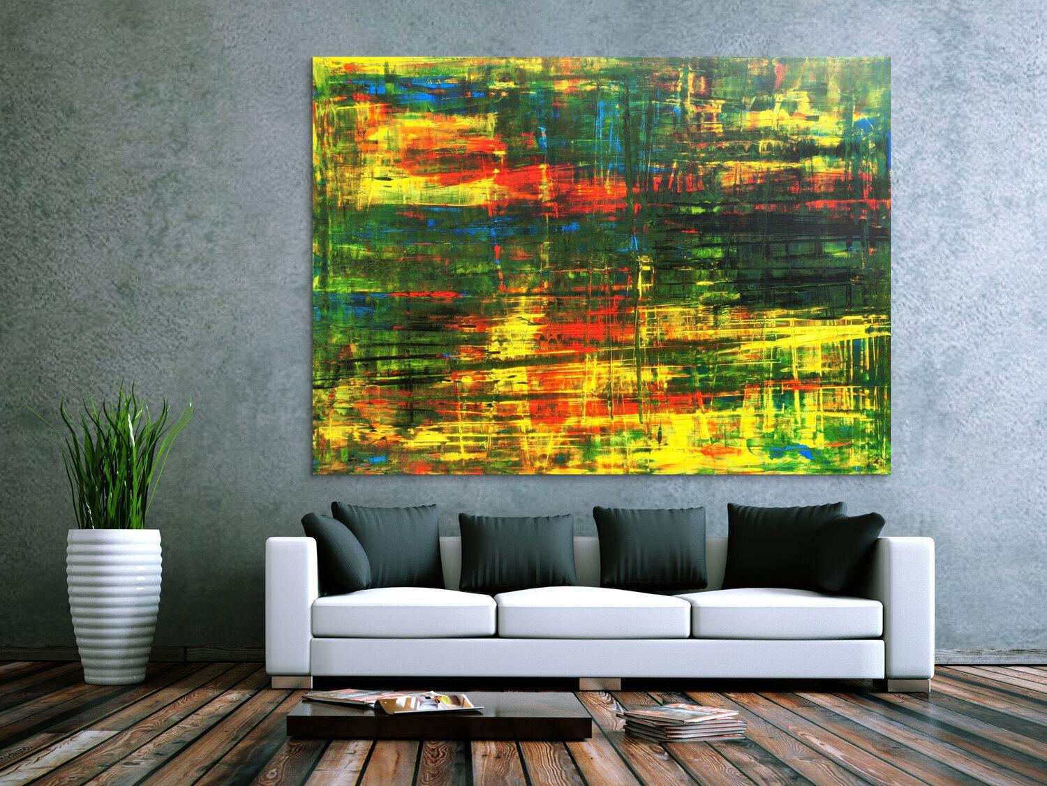 Abstraktes Acrylbild Spachteltechnik grün gelb rot