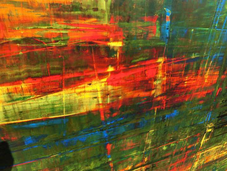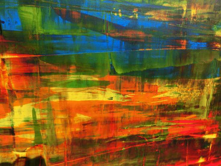 Dieses abstrakte Acrylbild ist ein handgemaltes Original vom Künstler Alex Zerr aus Bad Lisppringe und ist im Jahr 2015 in seinem Atelier entstanden. Das Bild hat eine Größe von 150x200cm und ist bereits auf einem hochwertigen und stabilem Rahmen aufgespannt. Dadurch kann das Bild nach der Lieferung direkt an die Wand gehängt werden und sofort in Ihrem Raum wirken. Alle Seiten des Gemäldes sind passend zum Motiv bemalt, so dass kein zusätzlicher Rahmen benötigt wird.