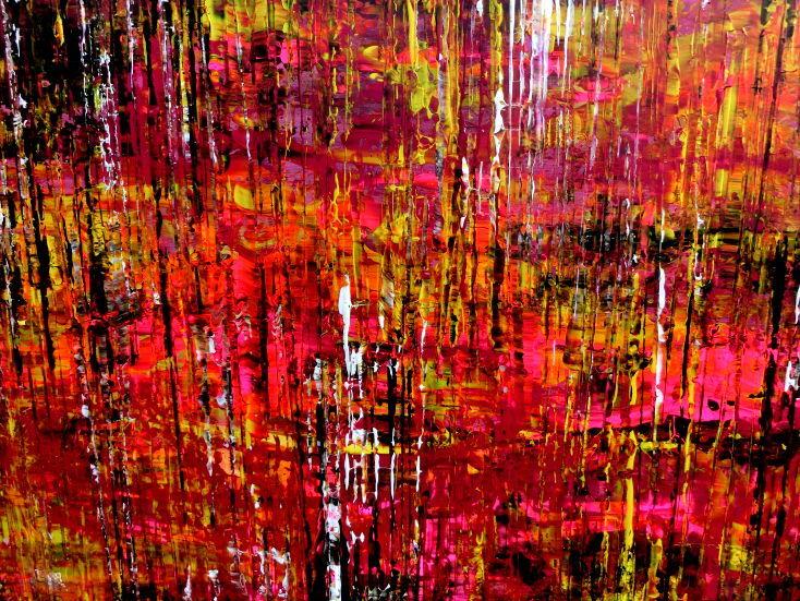 Dieses Werk ist wie alle meine Bilder: spontan entstanden, ganz intuitiv und ohne festes Konzept, und spiegelt oft meine momentane Stimmung wider wie auf der Leinwand festgehalten wurde.