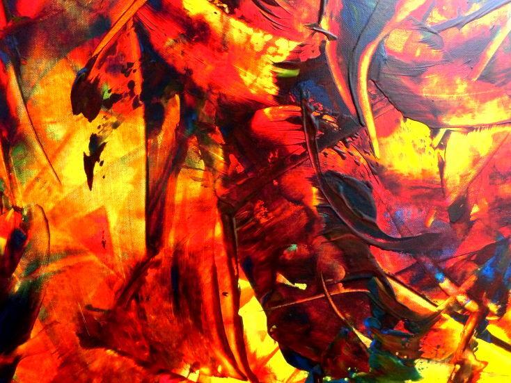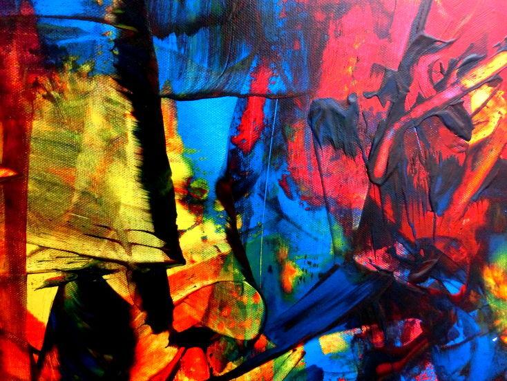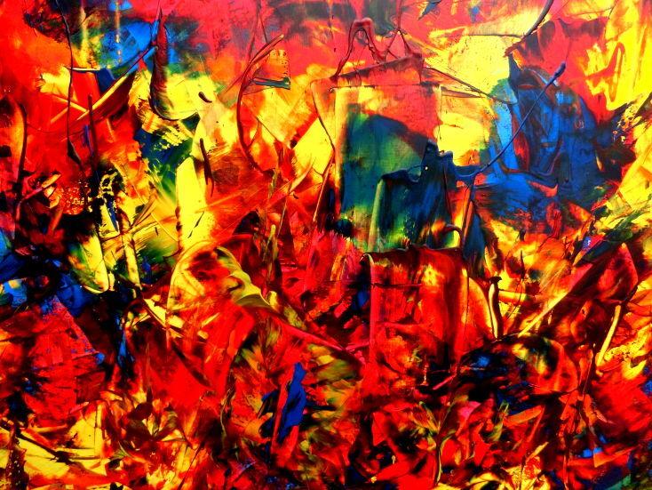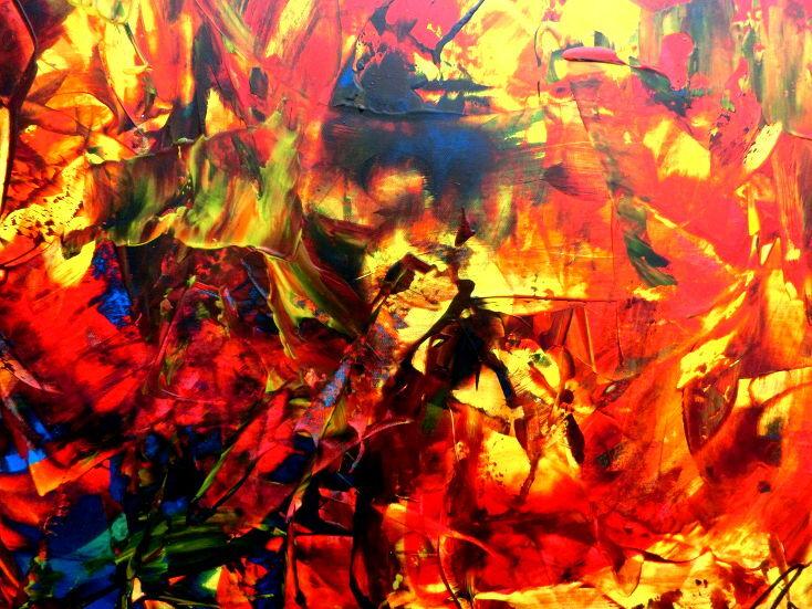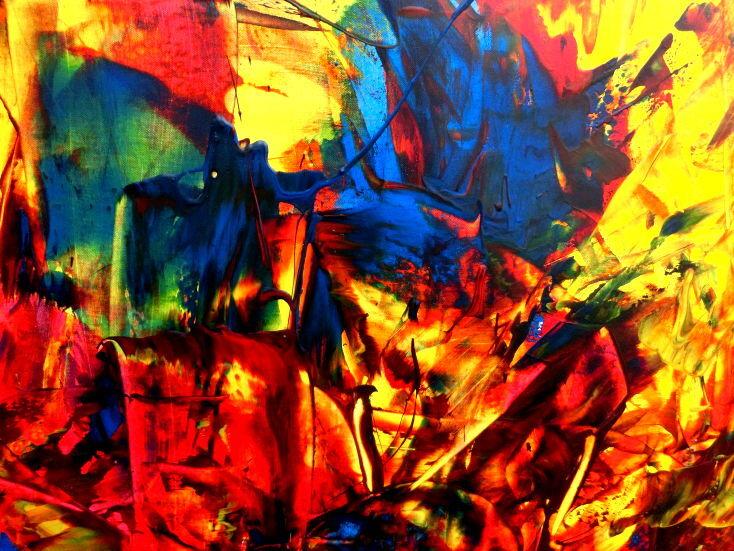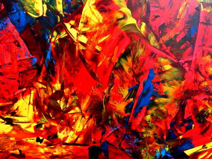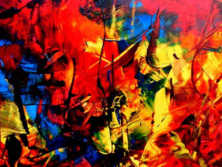 Abstraktes Acrylbild Spachteltechnik sehr modern viele Farben rot blau gelb bunt