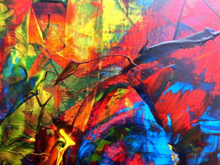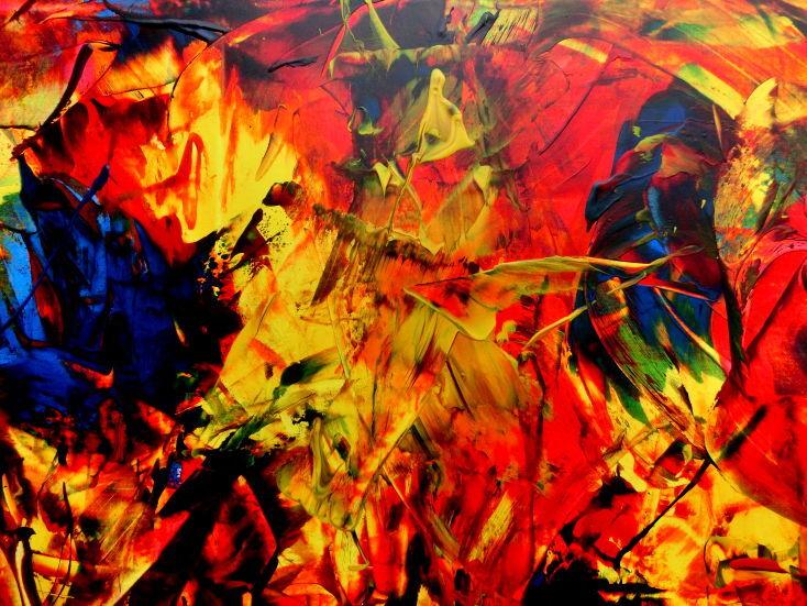 Dieses Werk ist wie alle meine Bilder: spontan entstanden, ganz intuitiv und ohne festes Konzept, und spiegelt oft meine momentane Stimmung wider wie auf der Leinwand festgehalten wurde.