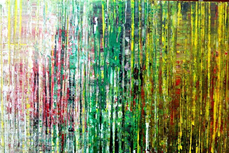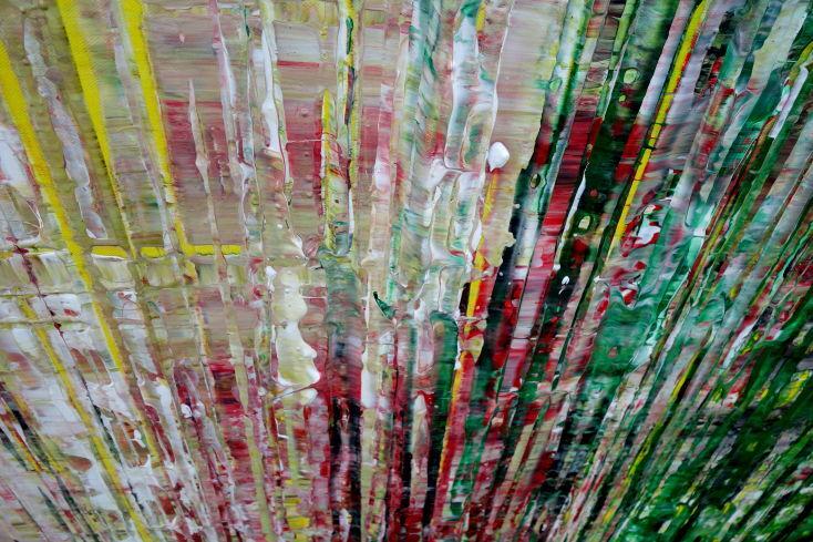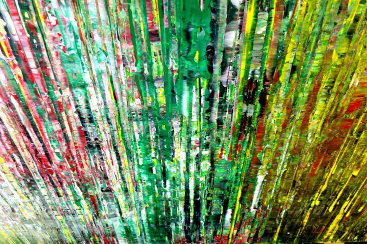 Hallo, ich bin Alex Zerr, der Künstler hinter diesem Gemälde. In meinem Atelier in Bad Lippspringe erschaffe ich abstrakte Acrylbilder, überwiegend im Action-Painting-Stil. Meißtens mit Acrylfarben und auf sehr großen XXL-Leinwänden, die meinem kreativen Prozess besonders viel Freiheit erlauben und oft zu beeindruckenden Gemälden führen.