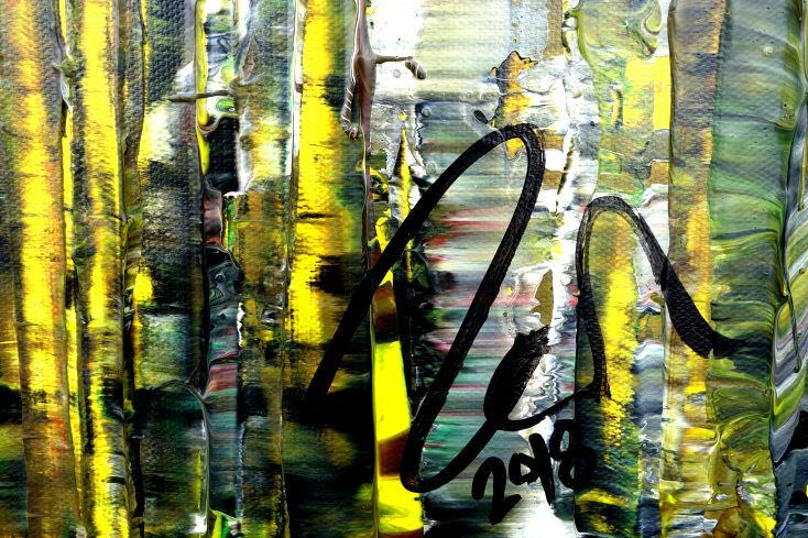 Dieses abstrakte Acrylbild ist ein handgemaltes Original vom Künstler Alex Zerr aus Bad Lisppringe und ist im Jahr 2018 in seinem Atelier entstanden. Das Bild hat eine Größe von 90x140cm und ist bereits auf einem hochwertigen und stabilem Rahmen aufgespannt. Dadurch kann das Bild nach der Lieferung direkt an die Wand gehängt werden und sofort in Ihrem Raum wirken. Alle Seiten des Gemäldes sind passend zum Motiv bemalt, so dass kein zusätzlicher Rahmen benötigt wird.