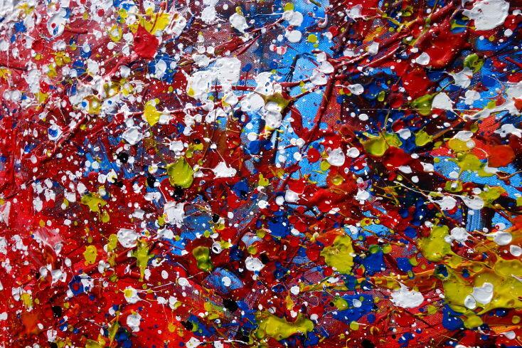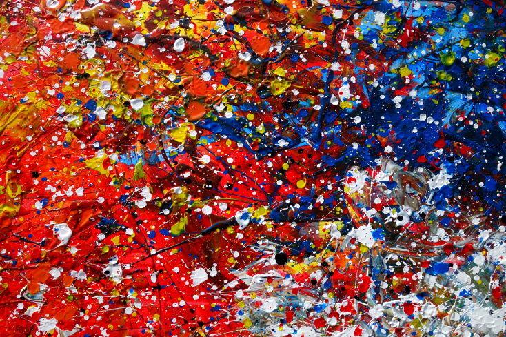 Hallo, ich bin Alex Zerr, der Künstler hinter diesem Gemälde. In meinem Atelier in Bad Lippspringe erschaffe ich abstrakte Acrylbilder, überwiegend im Action-Painting-Stil. Meißtens mit Acrylfarben und auf sehr großen XXL-Leinwänden, die meinem kreativen Prozess besonders viel Freiheit erlauben und oft zu beeindruckenden Gemälden führen.