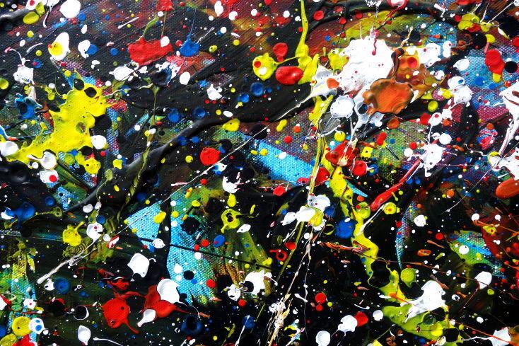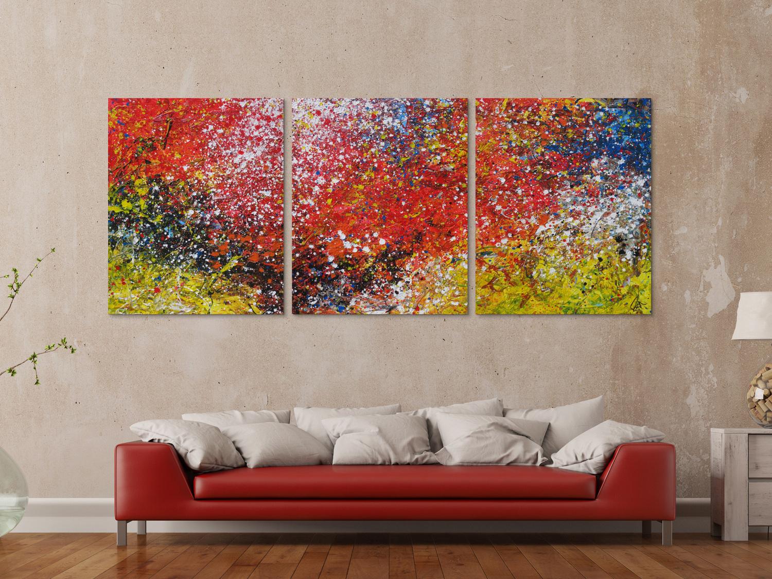 Abstraktes Acrylbild Triptychon groß sehr bunt Action Painting expressionistisch moderne Malerei