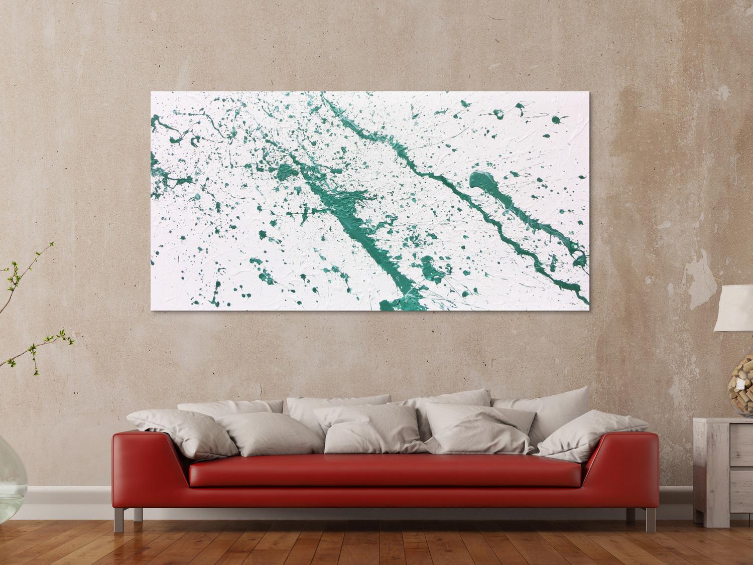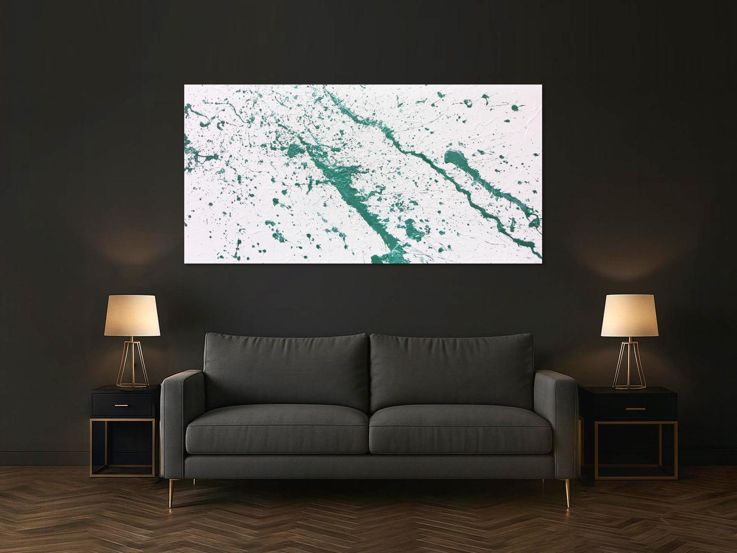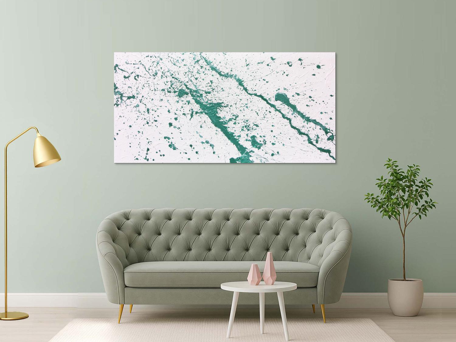 Abstraktes Gemälde auf Leinwand Abstraktes Acrylbild türkis modern minimalistisch in 100x200cm von Alex Zerr