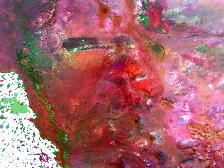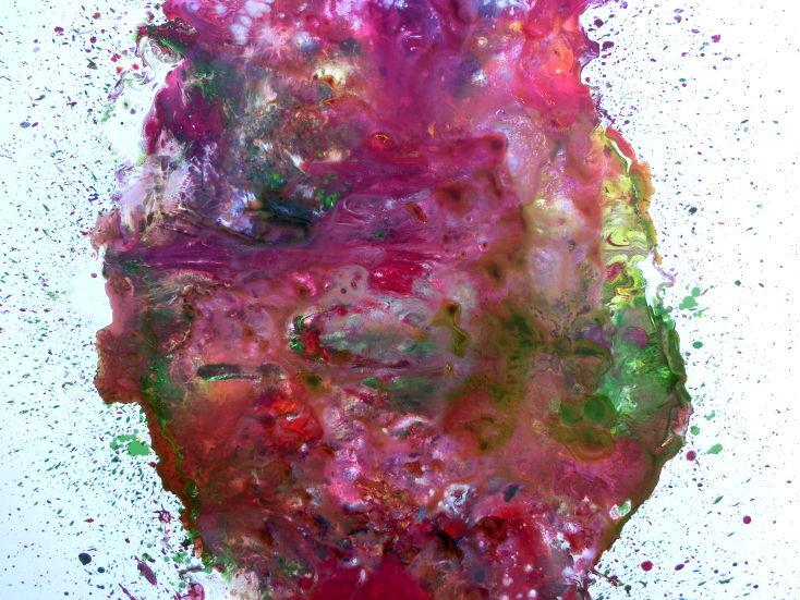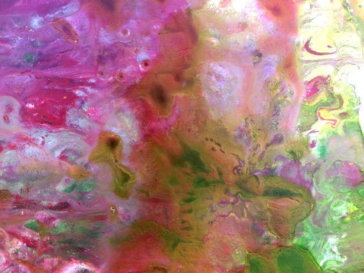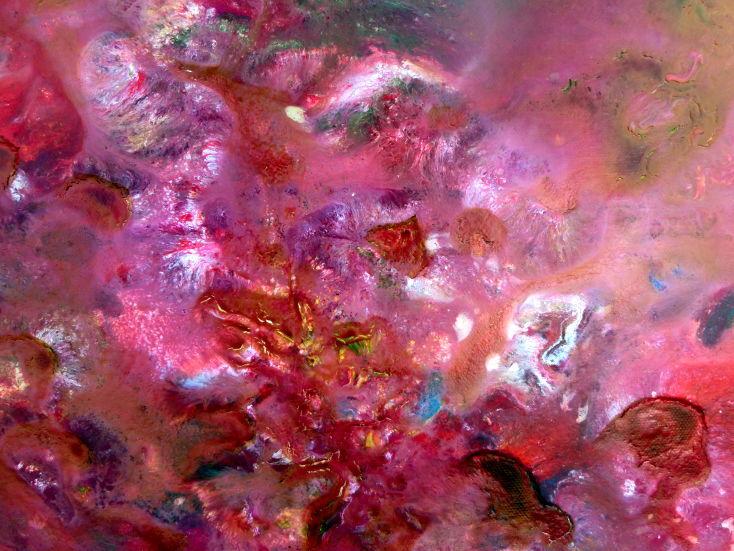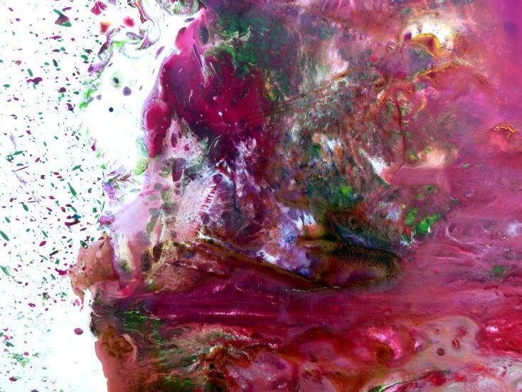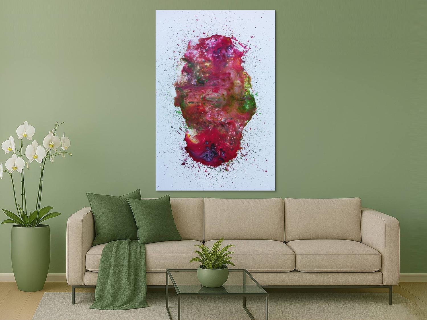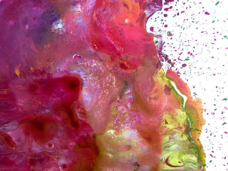Abstraktes Acrylbild verlaufene Farben modern in pink berry rosa violett grün