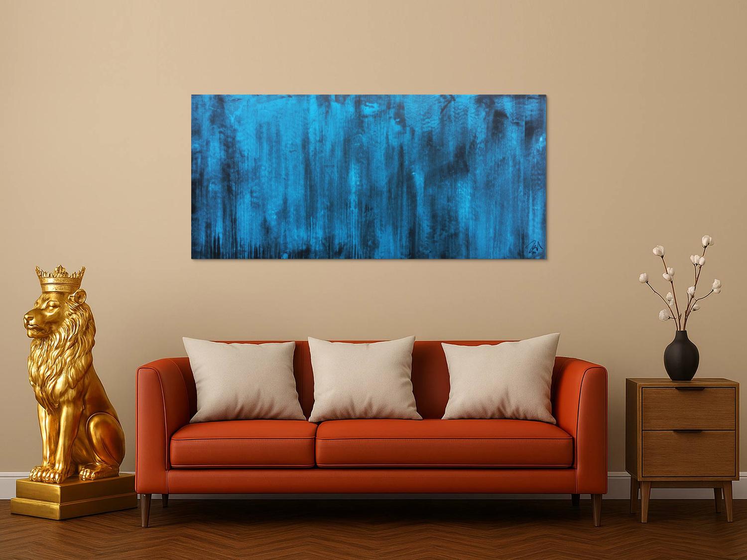 Dieses abstrakte Acrylbild ist ein handgemaltes Original vom Künstler Alex Zerr aus Bad Lisppringe und ist im Jahr 2016 in seinem Atelier entstanden. Das Bild hat eine Größe von 75x160cm und ist bereits auf einem hochwertigen und stabilem Rahmen aufgespannt. Dadurch kann das Bild nach der Lieferung direkt an die Wand gehängt werden und sofort in Ihrem Raum wirken. Alle Seiten des Gemäldes sind passend zum Motiv bemalt, so dass kein zusätzlicher Rahmen benötigt wird.