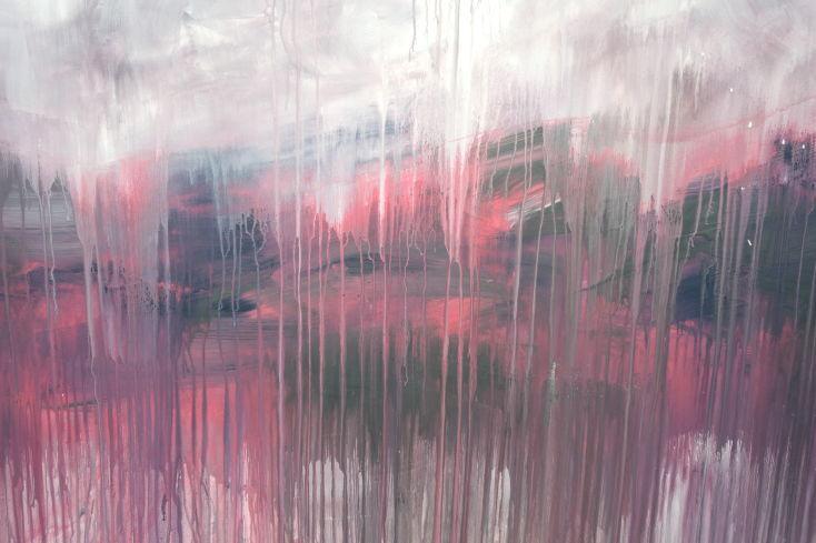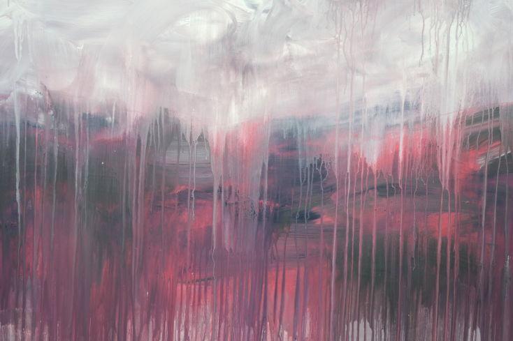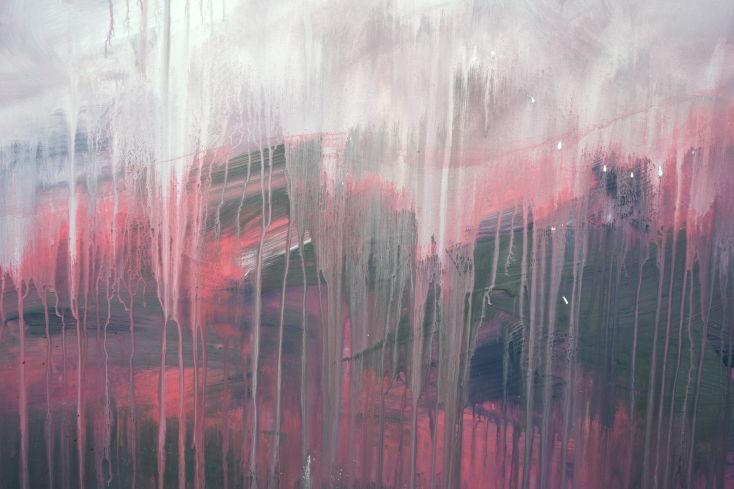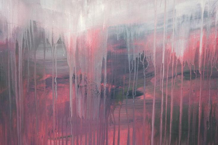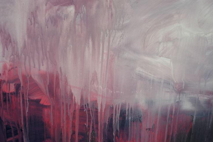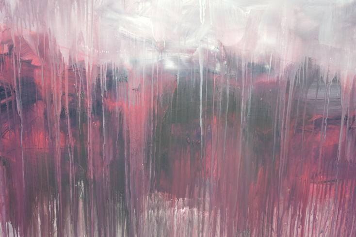 Abstraktes Acrylbild zeitgenössisch rosa taupe grau weiß modern expressionistisch