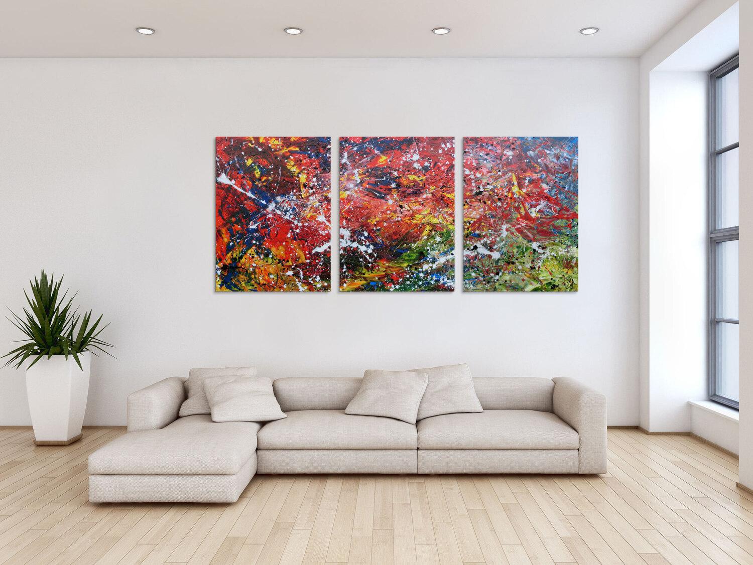 Abstraktes Acrylgemälde aus drei Teilen modernes Triptychon