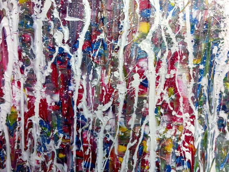Dieses Werk ist wie alle meine Bilder: spontan entstanden, ganz intuitiv und ohne festes Konzept, und spiegelt oft meine momentane Stimmung wider wie auf der Leinwand festgehalten wurde.