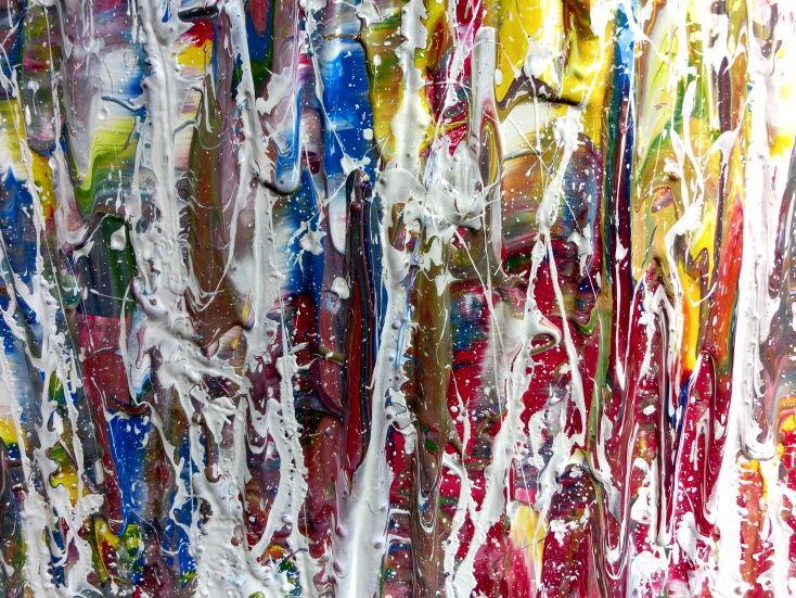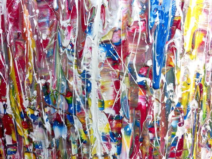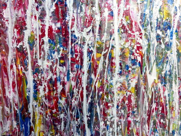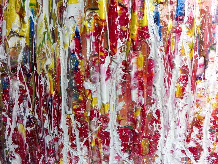 Hallo, ich bin Alex Zerr, der Künstler hinter diesem Gemälde. In meinem Atelier in Bad Lippspringe erschaffe ich abstrakte Acrylbilder, überwiegend im Action-Painting-Stil. Meißtens mit Acrylfarben und auf sehr großen XXL-Leinwänden, die meinem kreativen Prozess besonders viel Freiheit erlauben und oft zu beeindruckenden Gemälden führen.