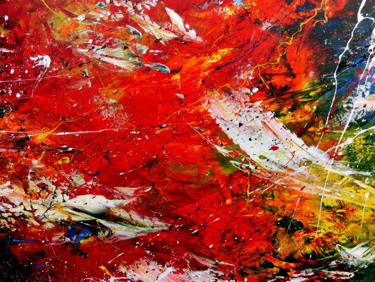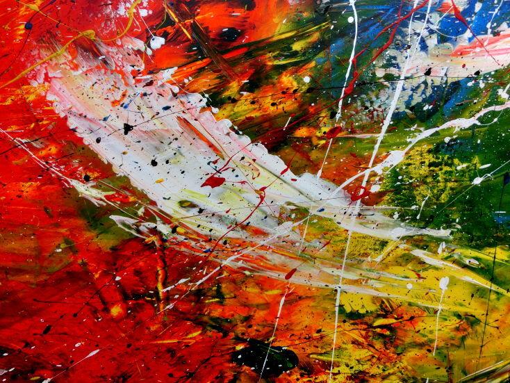 Hallo, ich bin Alex Zerr, der Künstler hinter diesem Gemälde. In meinem Atelier in Bad Lippspringe erschaffe ich abstrakte Acrylbilder, überwiegend im Action-Painting-Stil. Meißtens mit Acrylfarben und auf sehr großen XXL-Leinwänden, die meinem kreativen Prozess besonders viel Freiheit erlauben und oft zu beeindruckenden Gemälden führen.