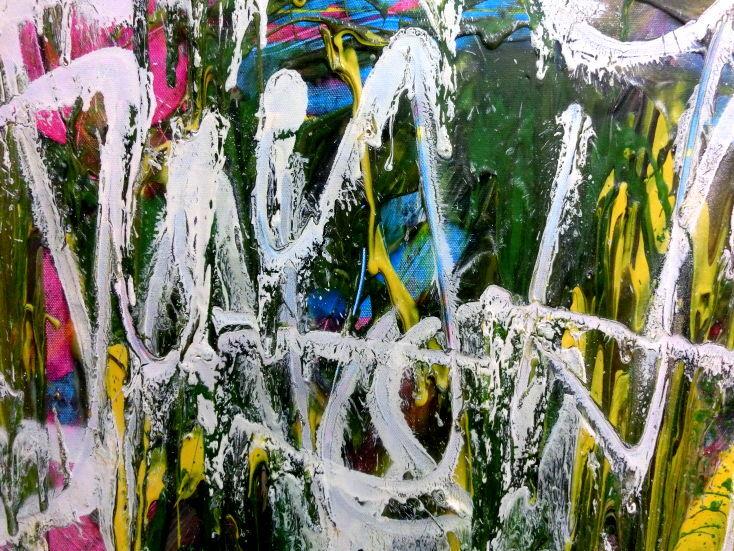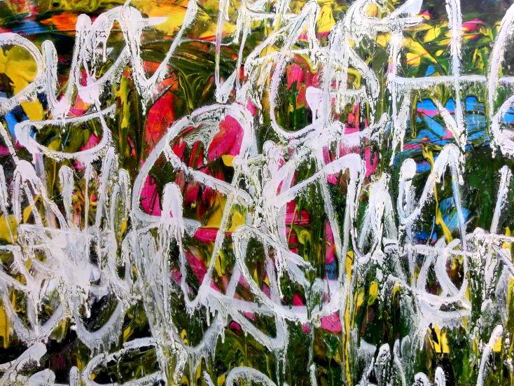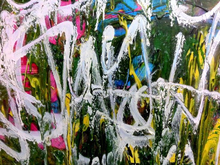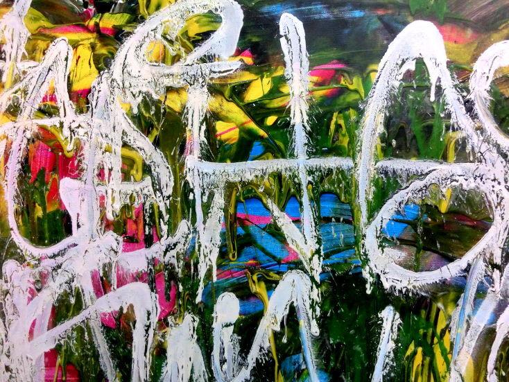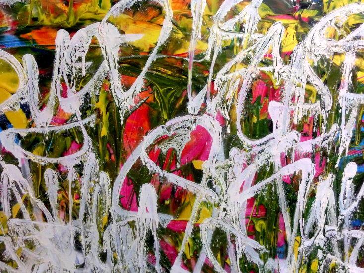 Abstraktes Acrylgemälde Graffiti Tags modern zeitgenössisch bunt und weiß