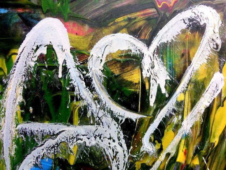 Dieses Werk ist wie alle meine Bilder: spontan entstanden, ganz intuitiv und ohne festes Konzept, und spiegelt oft meine momentane Stimmung wider wie auf der Leinwand festgehalten wurde.