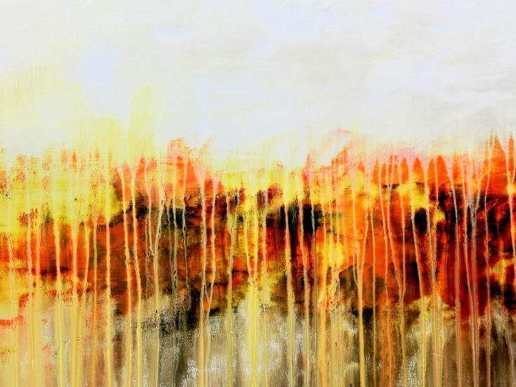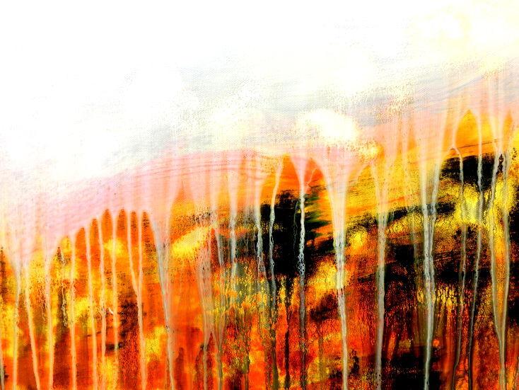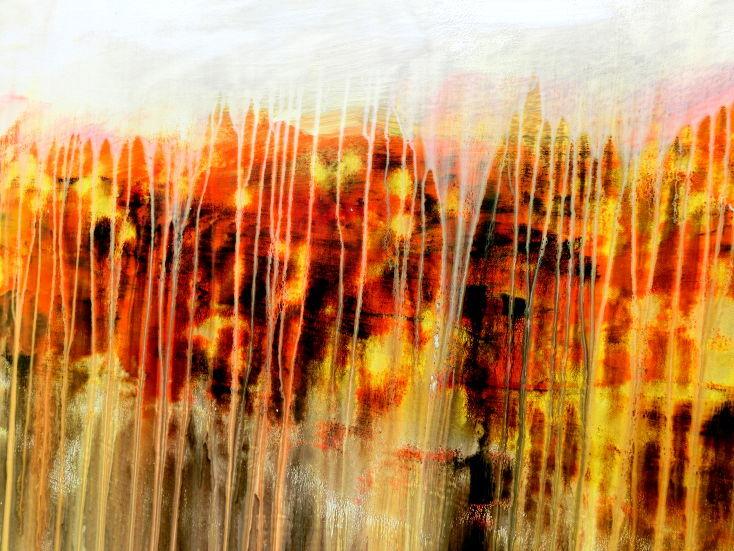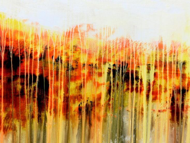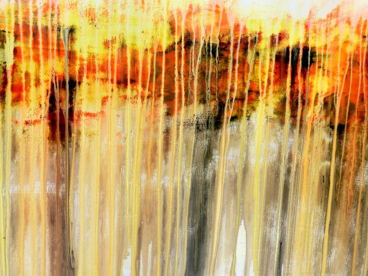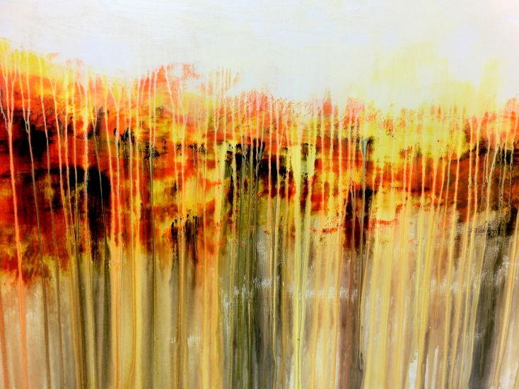 Abstraktes Acrylgemälde in orange gel weiß Fließtechnik helle Farben mediterran