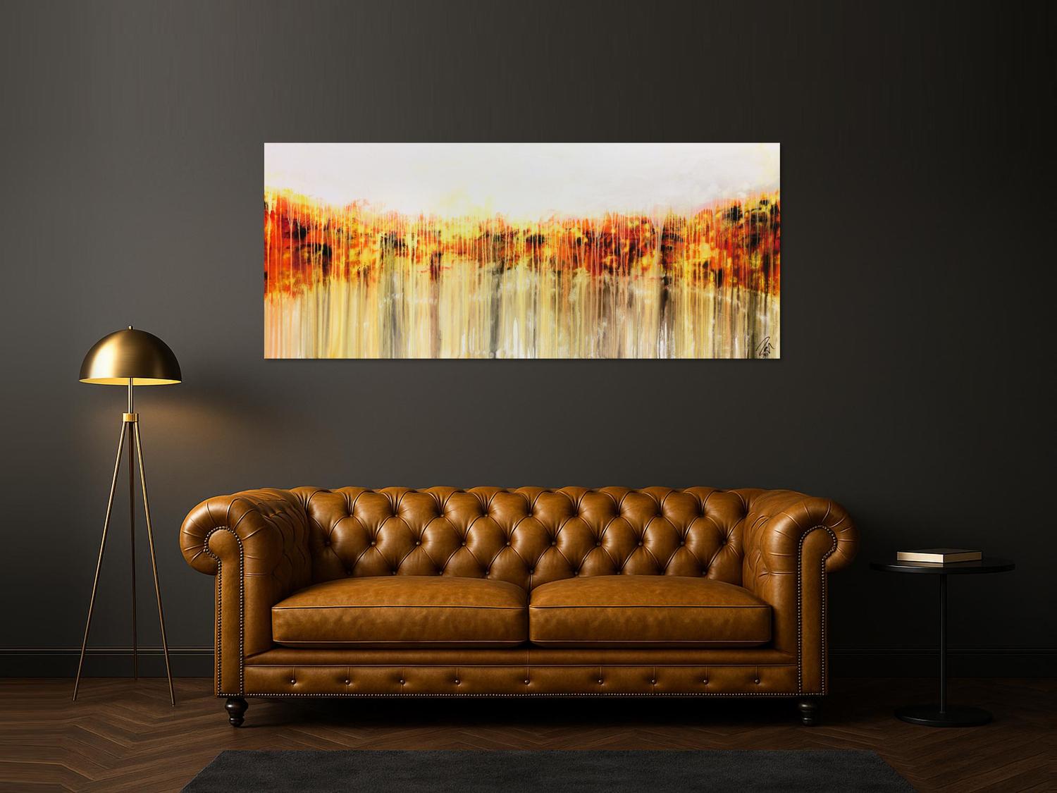 Dieses abstrakte Acrylbild ist ein handgemaltes Original vom Künstler Alex Zerr aus Bad Lisppringe und ist im Jahr 2017 in seinem Atelier entstanden. Das Bild hat eine Größe von 80x200cm und ist bereits auf einem hochwertigen und stabilem Rahmen aufgespannt. Dadurch kann das Bild nach der Lieferung direkt an die Wand gehängt werden und sofort in Ihrem Raum wirken. Alle Seiten des Gemäldes sind passend zum Motiv bemalt, so dass kein zusätzlicher Rahmen benötigt wird.