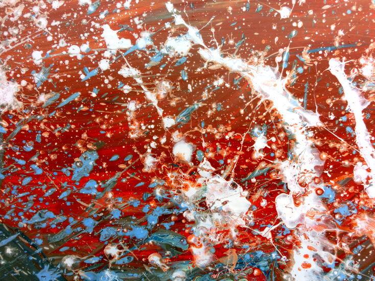 Dieses abstrakte Acrylbild ist ein handgemaltes Original vom Künstler Alex Zerr aus Bad Lisppringe und ist im Jahr 2016 in seinem Atelier entstanden. Das Bild hat eine Größe von 80x150cm und ist bereits auf einem hochwertigen und stabilem Rahmen aufgespannt. Dadurch kann das Bild nach der Lieferung direkt an die Wand gehängt werden und sofort in Ihrem Raum wirken. Alle Seiten des Gemäldes sind passend zum Motiv bemalt, so dass kein zusätzlicher Rahmen benötigt wird.