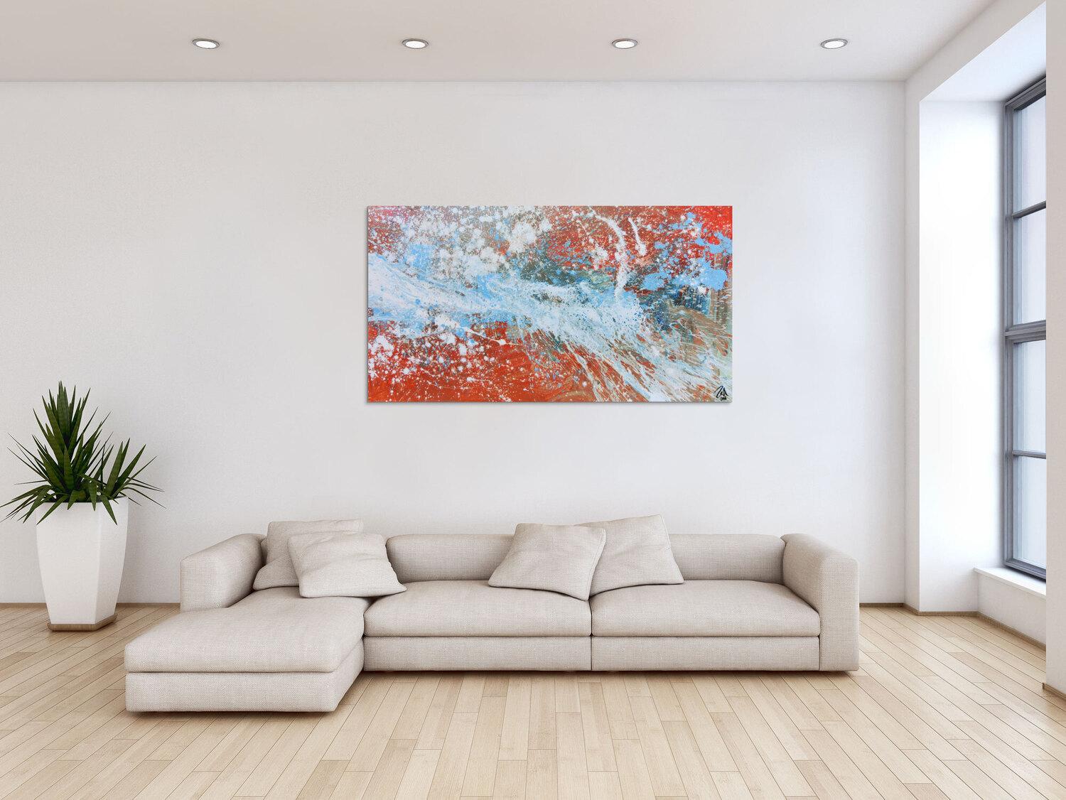 Abstraktes Gemälde auf Leinwand Abstraktes Acrylgemälde in orange und weiß sehr modern in 80x150cm von Alex Zerr