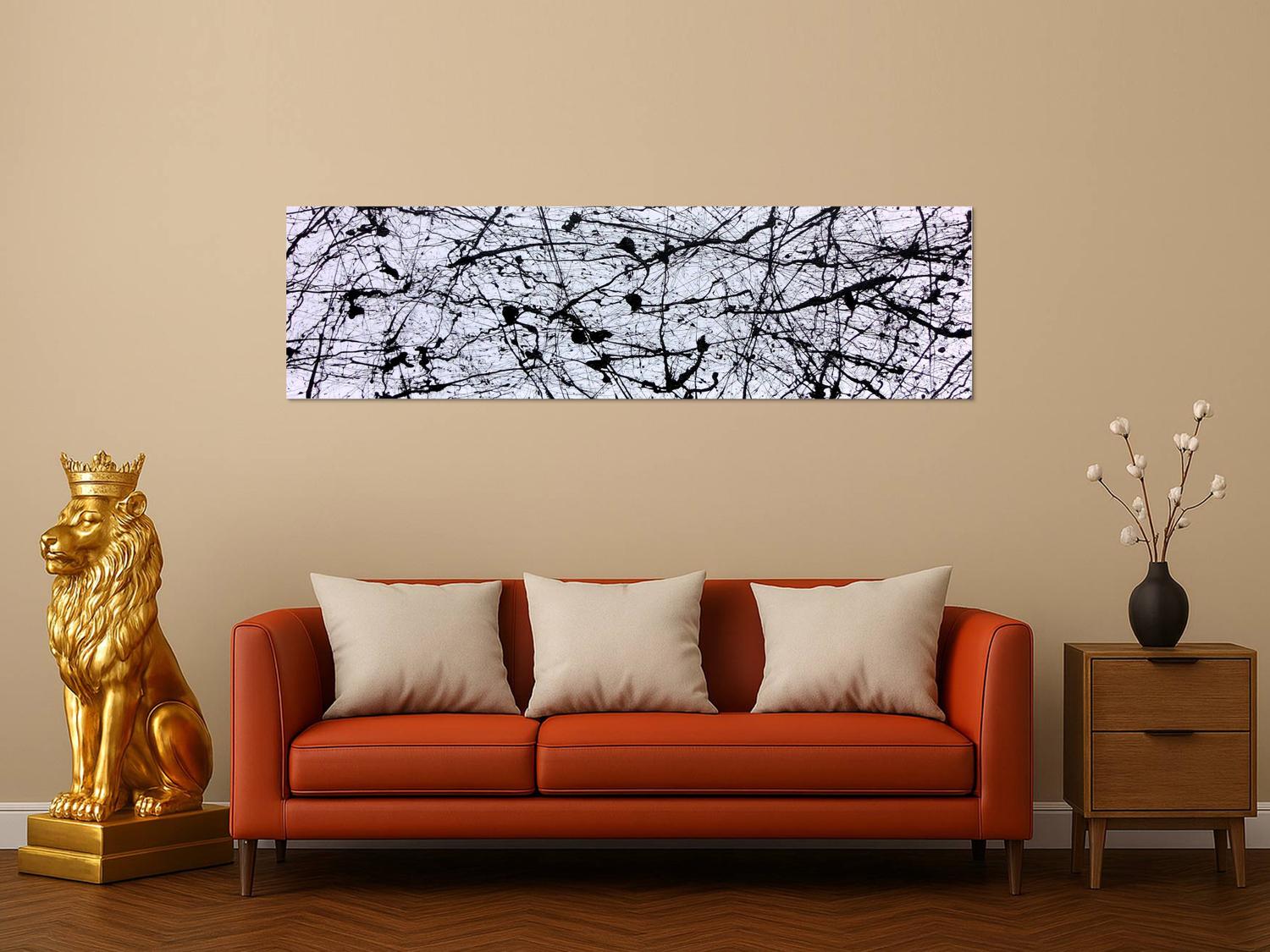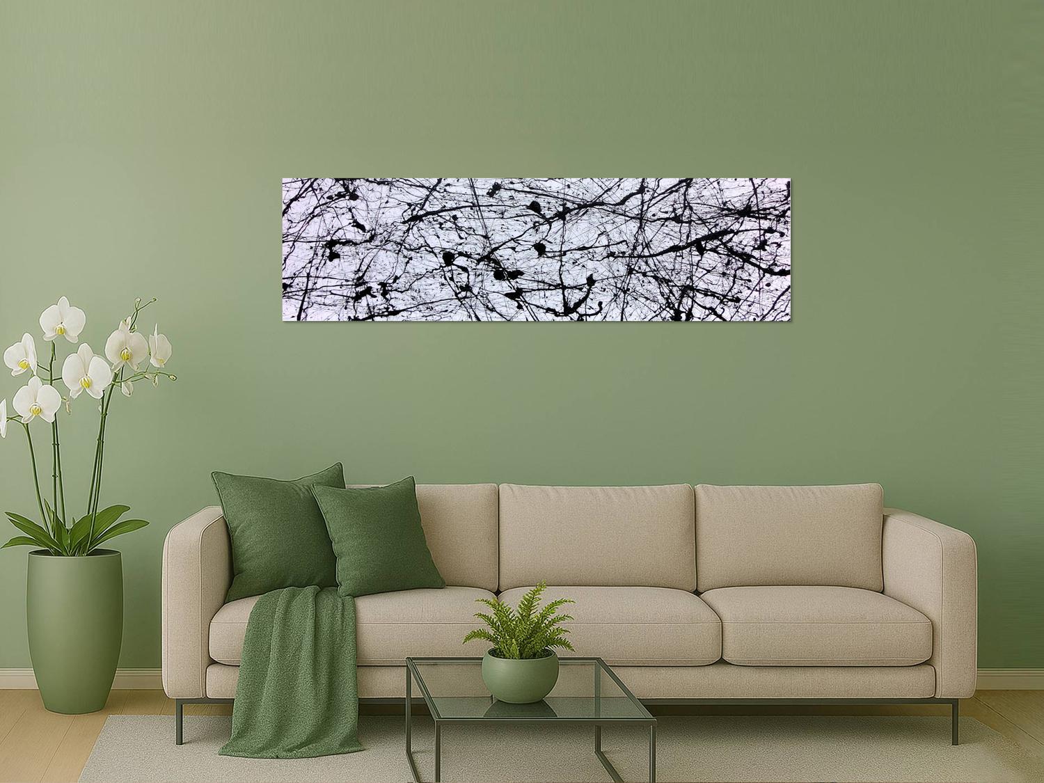 Abstraktes Gemälde auf Leinwand Abstraktes Acrylgemälde in schwarz weiß modern in 50x180cm von Alex Zerr