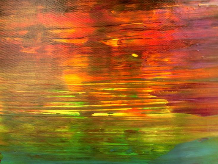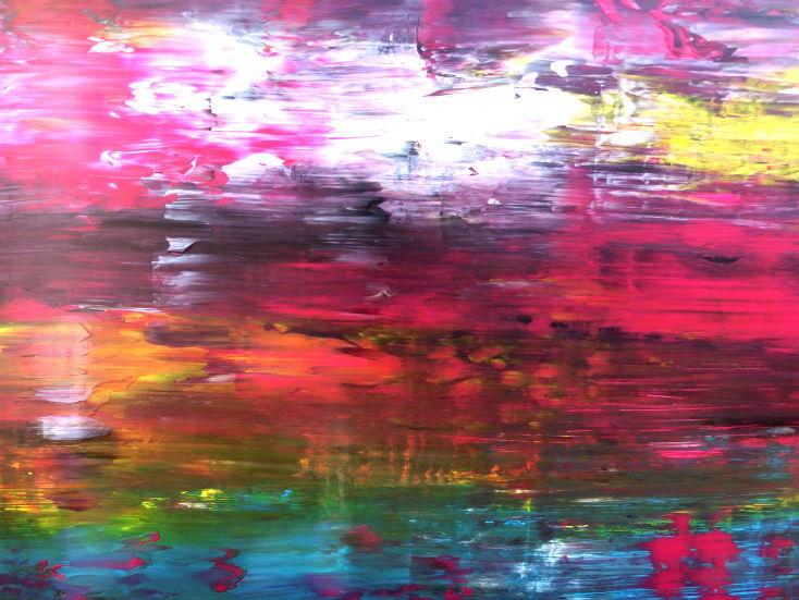 Dieses Werk ist wie alle meine Bilder: spontan entstanden, ganz intuitiv und ohne festes Konzept, und spiegelt oft meine momentane Stimmung wider wie auf der Leinwand festgehalten wurde.