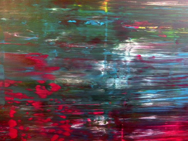 Dieses abstrakte Acrylbild ist ein handgemaltes Original vom Künstler Alex Zerr aus Bad Lisppringe und ist im Jahr 2016 in seinem Atelier entstanden. Das Bild hat eine Größe von 120x140cm und ist bereits auf einem hochwertigen und stabilem Rahmen aufgespannt. Dadurch kann das Bild nach der Lieferung direkt an die Wand gehängt werden und sofort in Ihrem Raum wirken. Alle Seiten des Gemäldes sind passend zum Motiv bemalt, so dass kein zusätzlicher Rahmen benötigt wird.