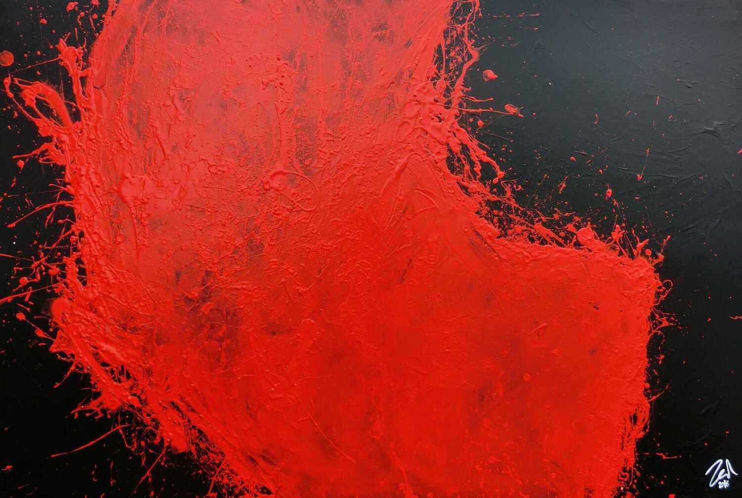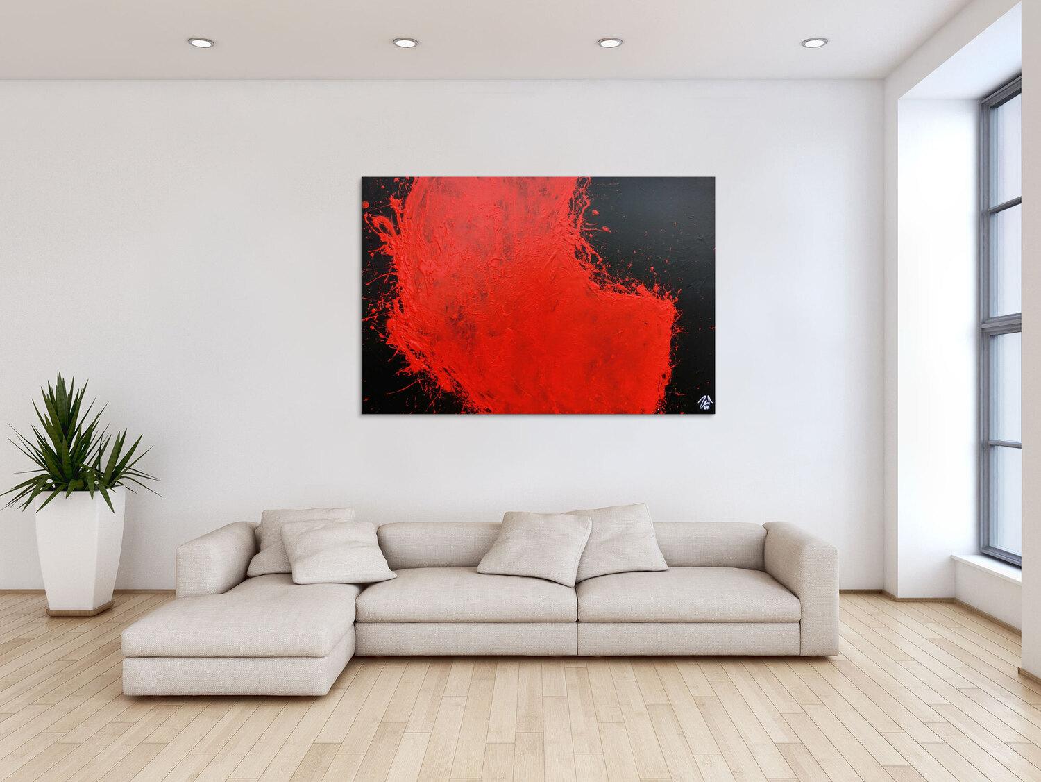 Abstraktes Gemälde auf Leinwand Abstraktes Acrylgemälde minimalistisch und modern in schwarz rot in 100x150cm von Alex Zerr