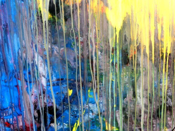 Dieses Werk ist wie alle meine Bilder: spontan entstanden, ganz intuitiv und ohne festes Konzept, und spiegelt oft meine momentane Stimmung wider wie auf der Leinwand festgehalten wurde.