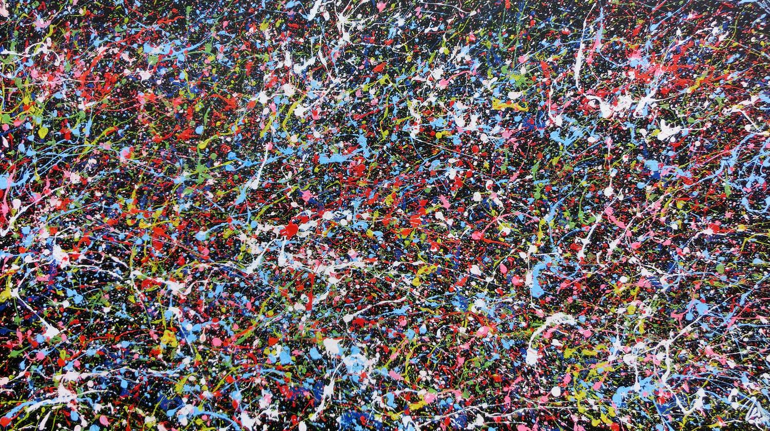 Abstraktes Gemälde auf Leinwand Abstraktes Acrylgemälde mit vielen Farben sehr bunt Splashstyle in 100x180cm von Alex Zerr