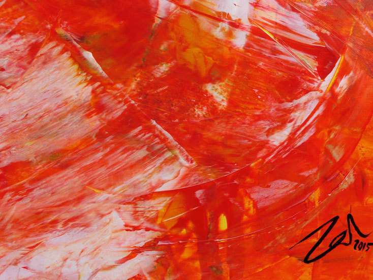 Dieses abstrakte Acrylbild ist ein handgemaltes Original vom Künstler Alex Zerr aus Bad Lisppringe und ist im Jahr 2015 in seinem Atelier entstanden. Das Bild hat eine Größe von 120x200cm und ist bereits auf einem hochwertigen und stabilem Rahmen aufgespannt. Dadurch kann das Bild nach der Lieferung direkt an die Wand gehängt werden und sofort in Ihrem Raum wirken. Alle Seiten des Gemäldes sind passend zum Motiv bemalt, so dass kein zusätzlicher Rahmen benötigt wird.