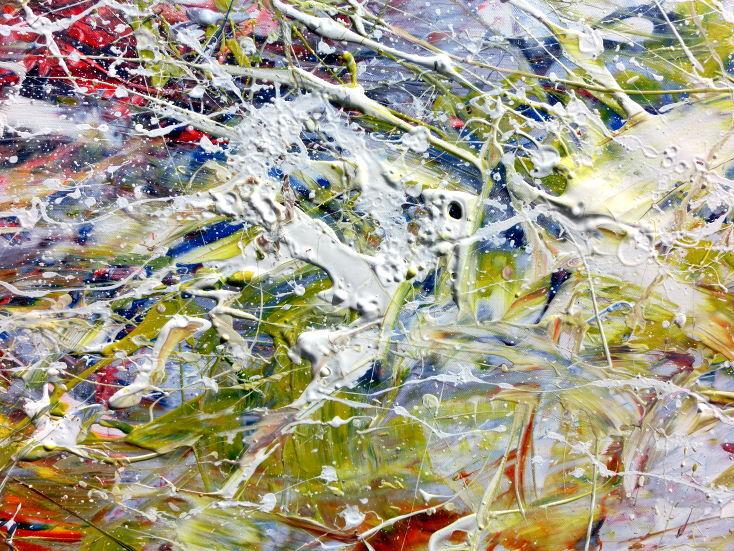 Hallo, ich bin Alex Zerr, der Künstler hinter diesem Gemälde. In meinem Atelier in Bad Lippspringe erschaffe ich abstrakte Acrylbilder, überwiegend im Action-Painting-Stil. Meißtens mit Acrylfarben und auf sehr großen XXL-Leinwänden, die meinem kreativen Prozess besonders viel Freiheit erlauben und oft zu beeindruckenden Gemälden führen.