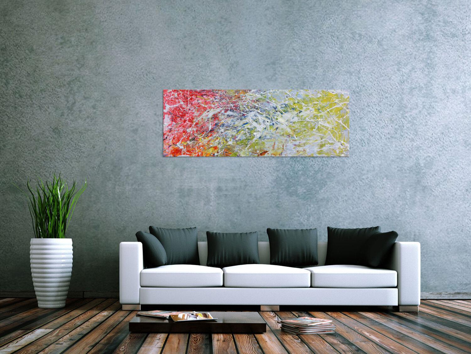 Die großformatigen, abstrakten Acrylgemälde sind ideal für Wohnzimmer, Schlafzimmer, Büros oder Geschäftsräume. Sie setzen farbenfrohe Akzente und schaffen eine lebendige, individuelle Atmosphäre die Sie und Ihre Gäste oder Kunden beeindrucken wird.