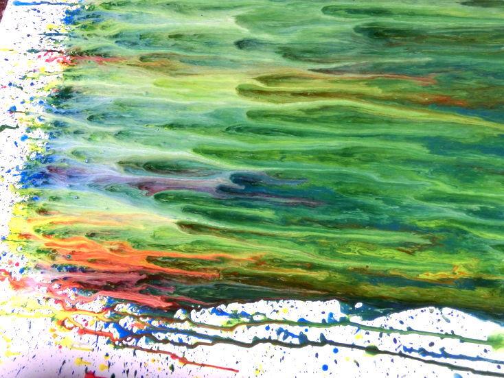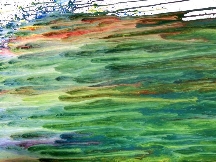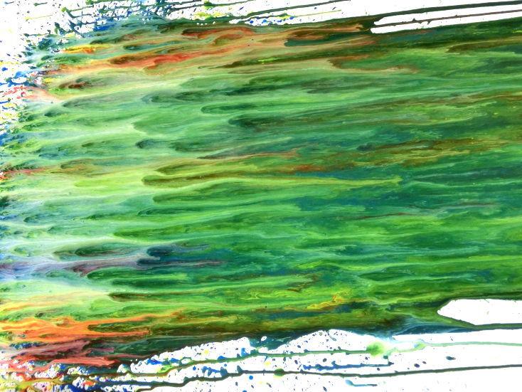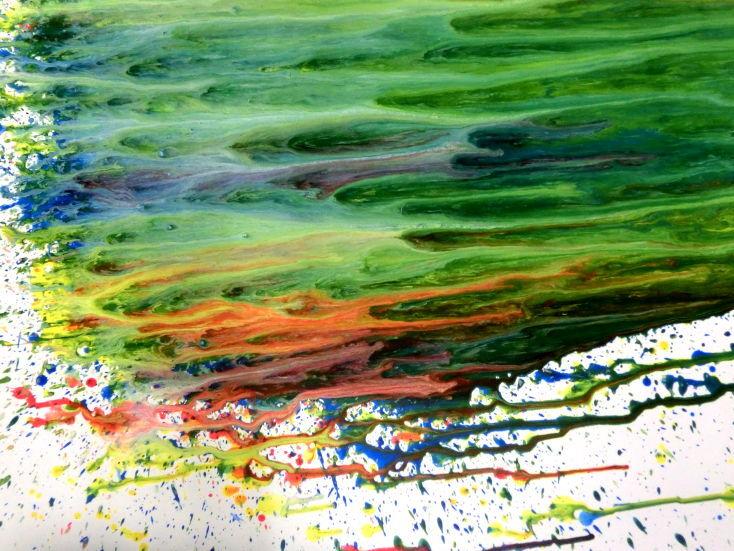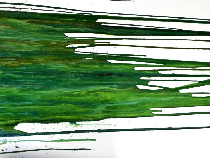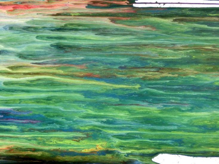 Abstraktes Acrylgemälde modern Fließtechnik grün türkis weiß
