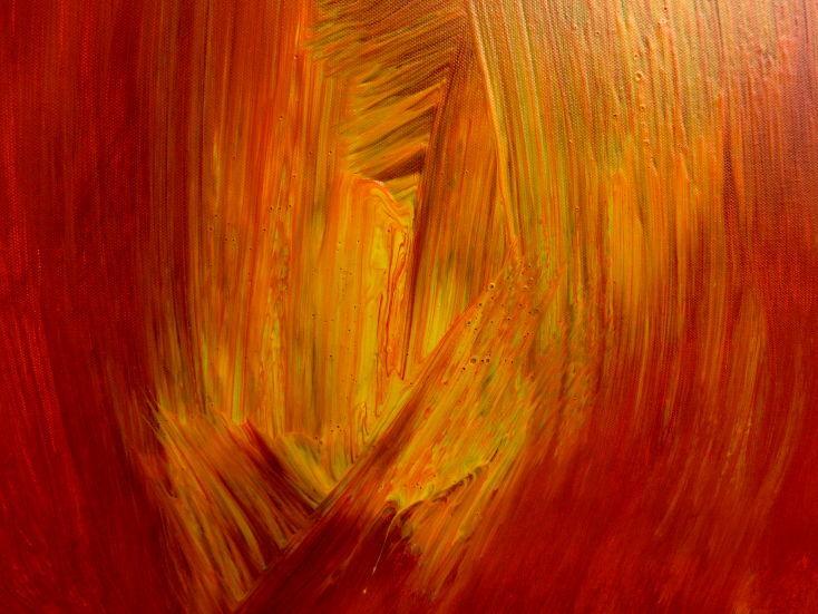 Dieses Werk ist wie alle meine Bilder: spontan entstanden, ganz intuitiv und ohne festes Konzept, und spiegelt oft meine momentane Stimmung wider wie auf der Leinwand festgehalten wurde.