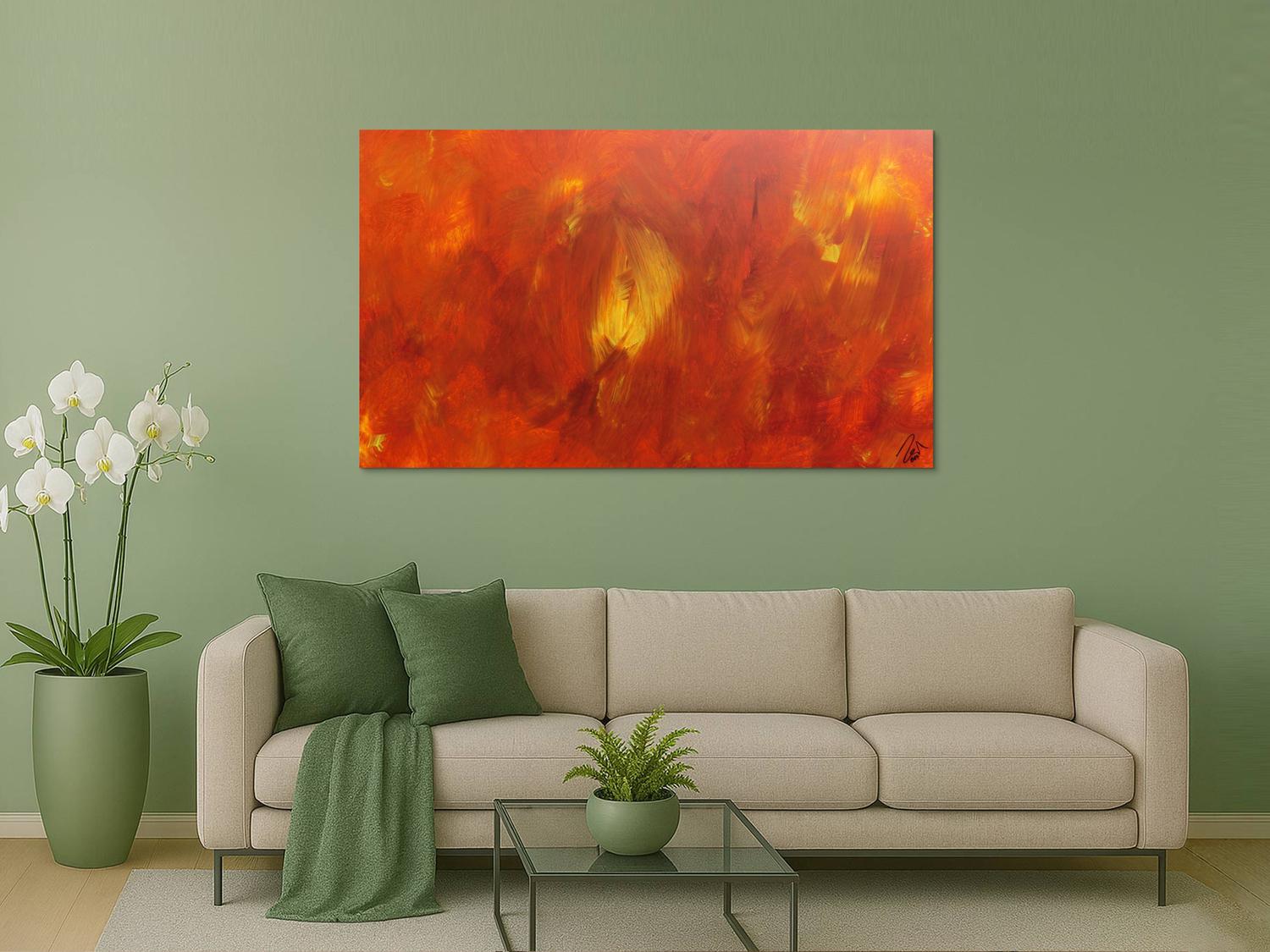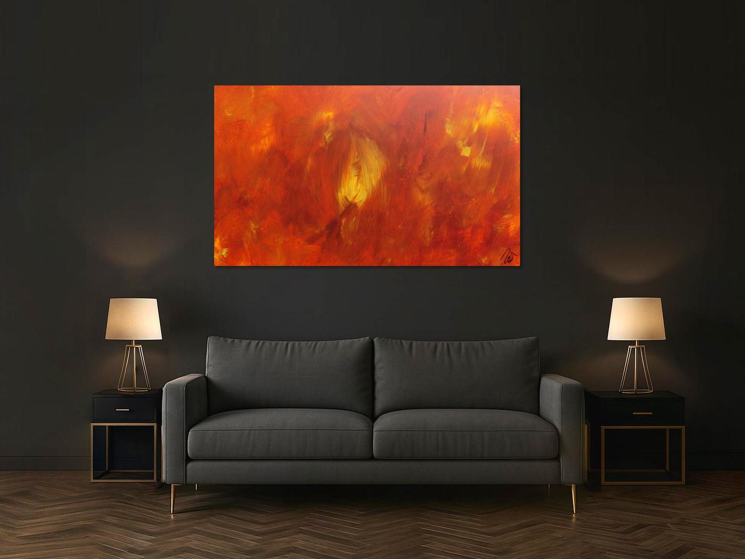 Abstraktes Gemälde auf Leinwand Abstraktes Acrylgemälde modern in orange und gelb schlicht in 100x170cm von Alex Zerr