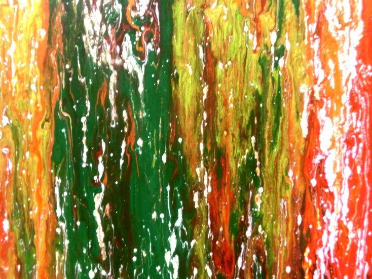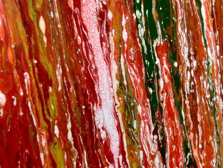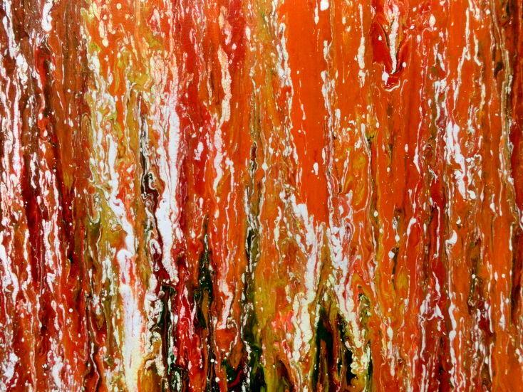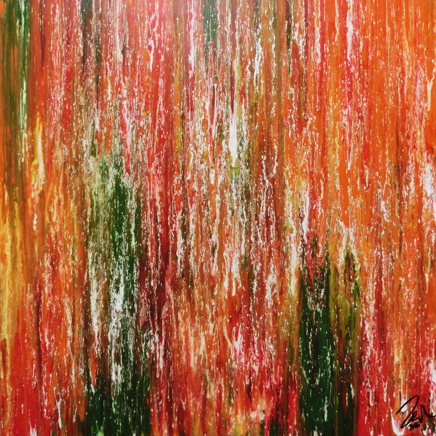 Abstraktes Acrylgemälde modern quadratisch in orange grün gelb und rot