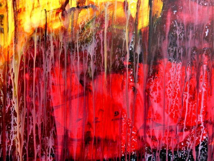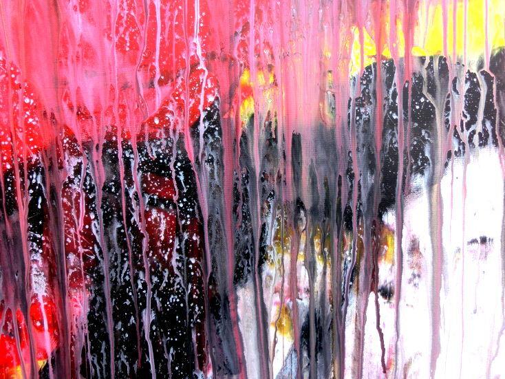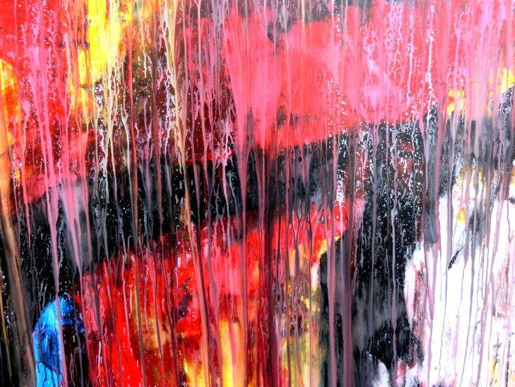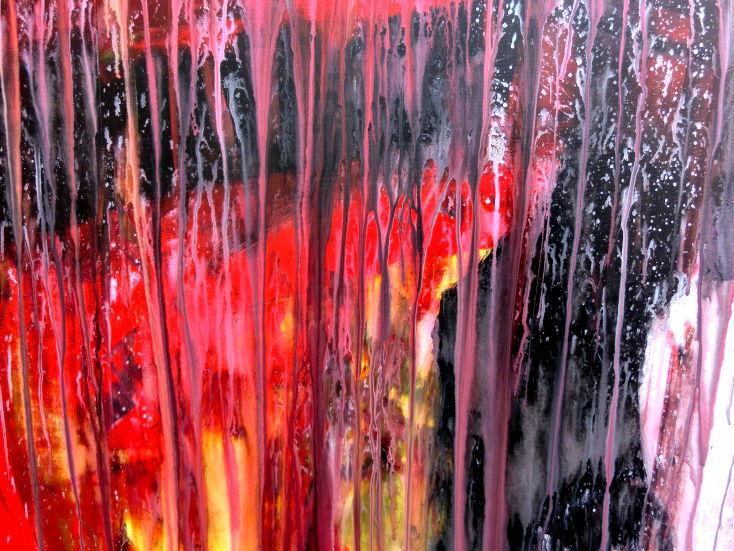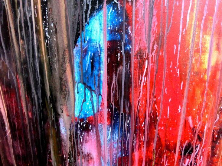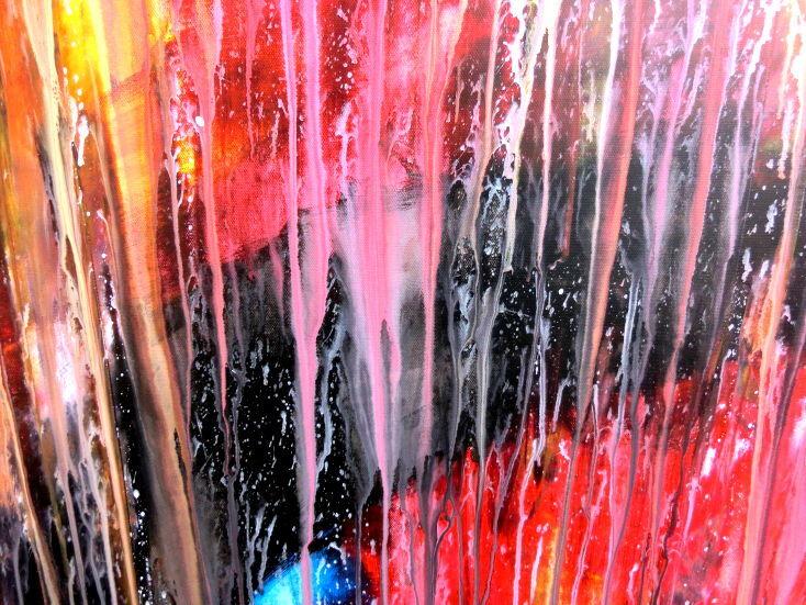 Dieses Werk ist wie alle meine Bilder: spontan entstanden, ganz intuitiv und ohne festes Konzept, und spiegelt oft meine momentane Stimmung wider wie auf der Leinwand festgehalten wurde.