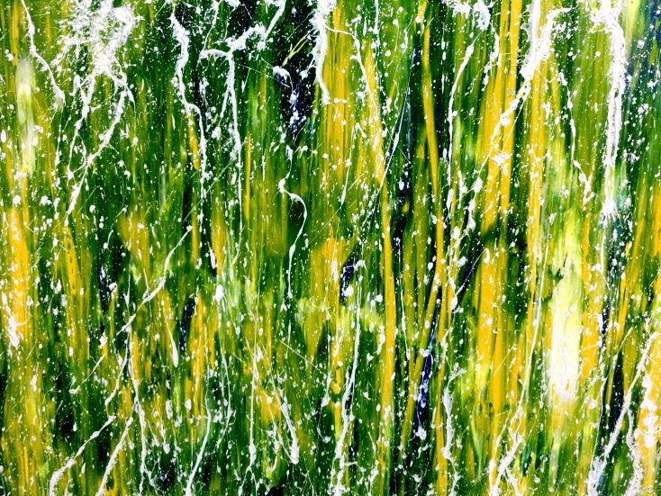 Dieses Werk ist wie alle meine Bilder: spontan entstanden, ganz intuitiv und ohne festes Konzept, und spiegelt oft meine momentane Stimmung wider wie auf der Leinwand festgehalten wurde.