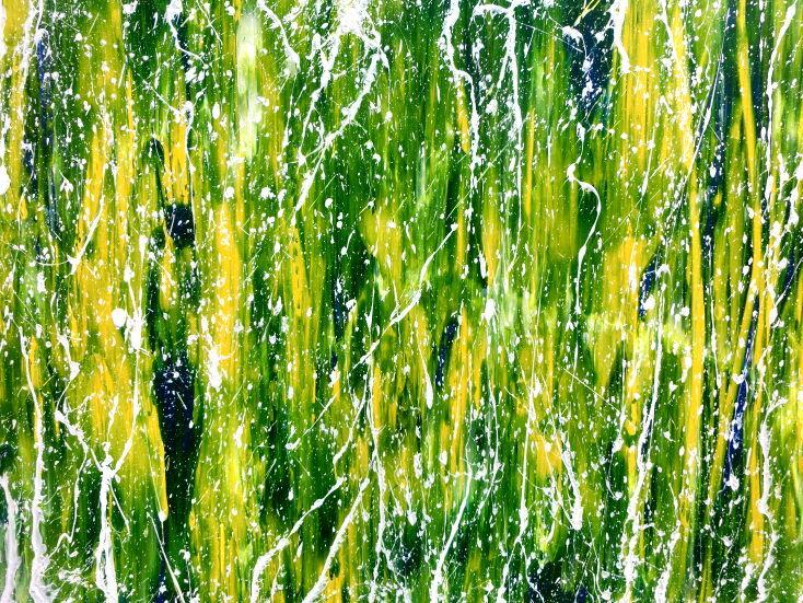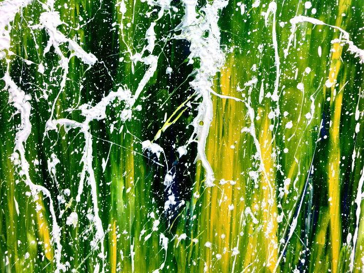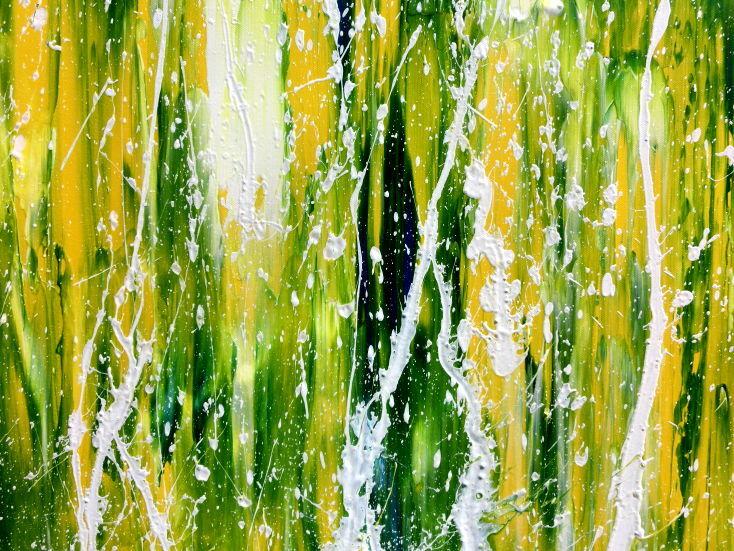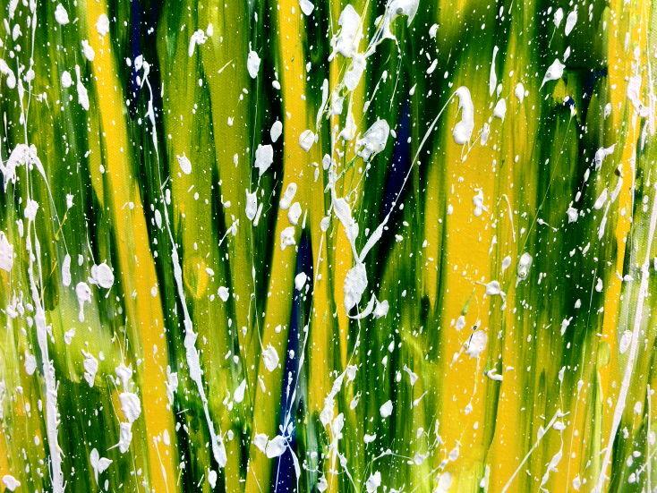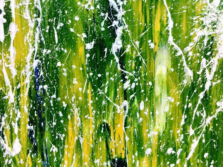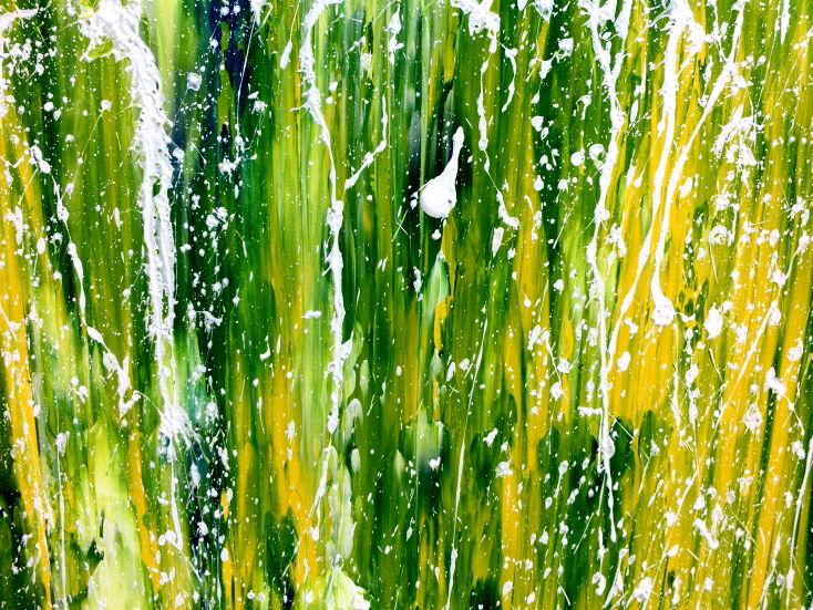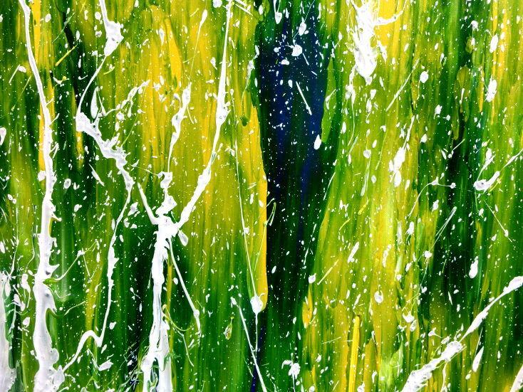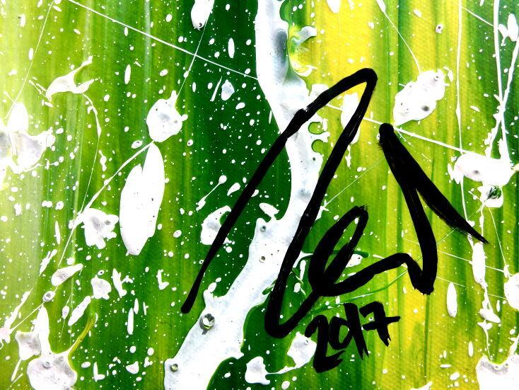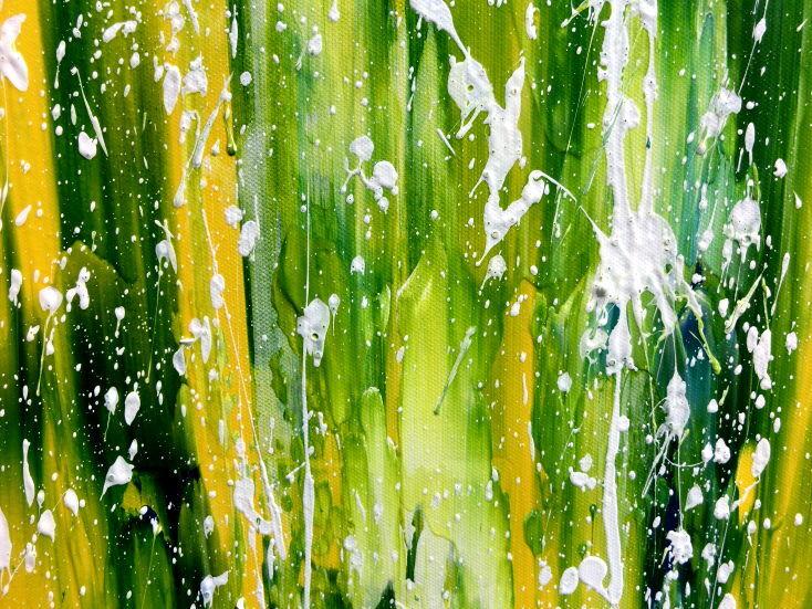 Abstraktes Acrylgemälde moderne Mischtechnik in grün blau gelb weiß