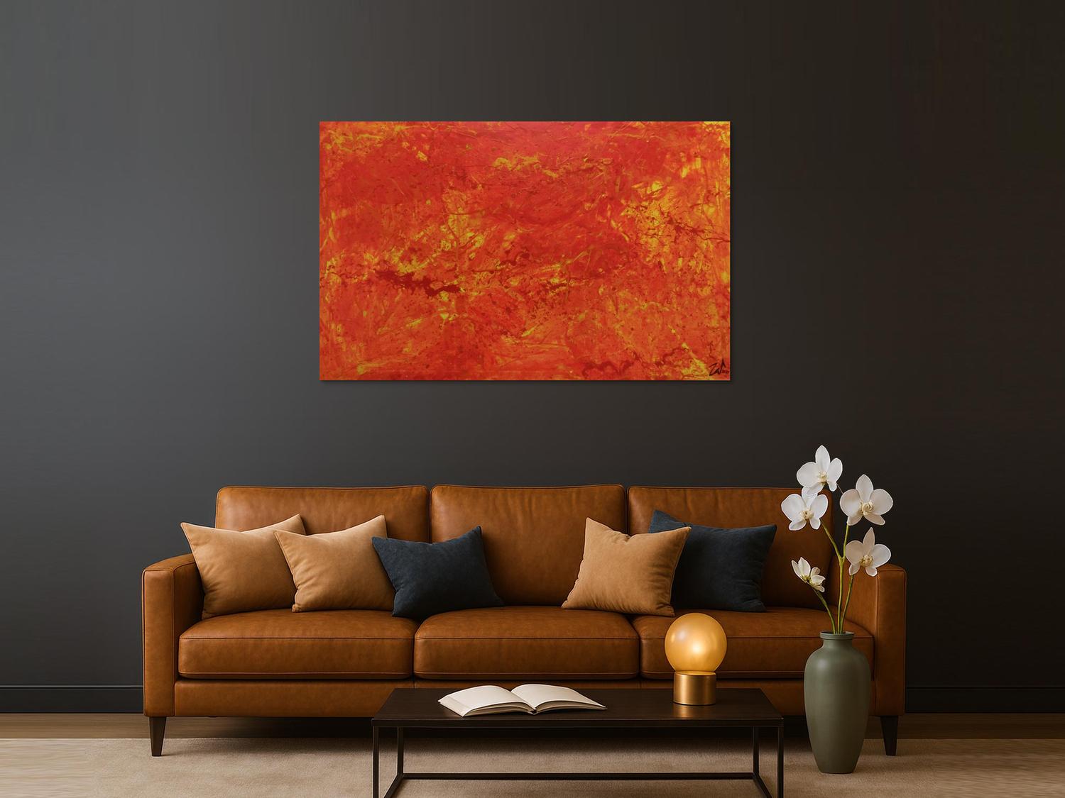 Abstraktes Gemälde auf Leinwand Abstraktes Acrylgemälde orange modern in 100x160cm von Alex Zerr