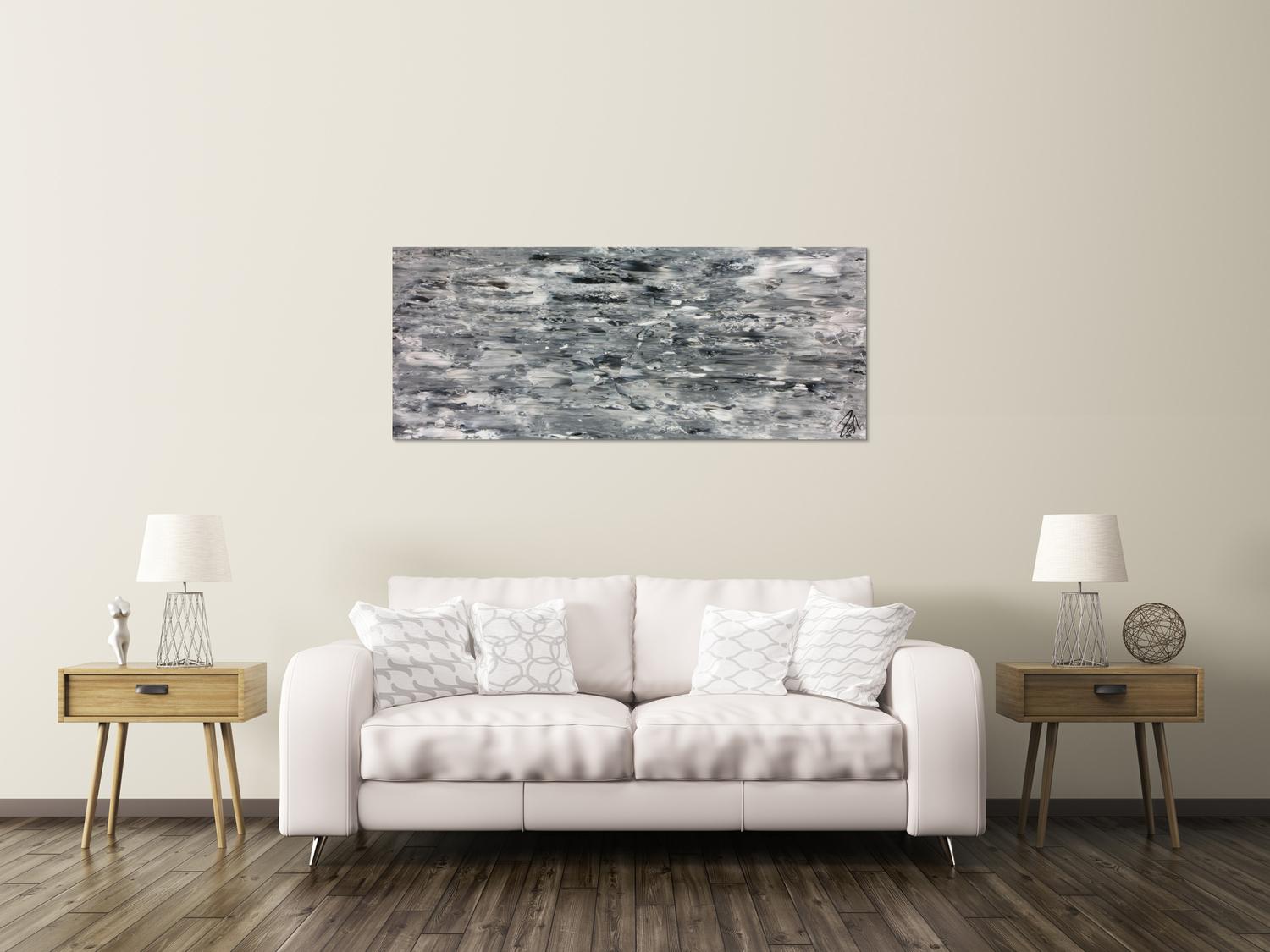 Abstraktes Gemälde auf Leinwand Abstraktes Acrylgemälde schlicht in grau weiß sehr modern in 60x150cm von Alex Zerr