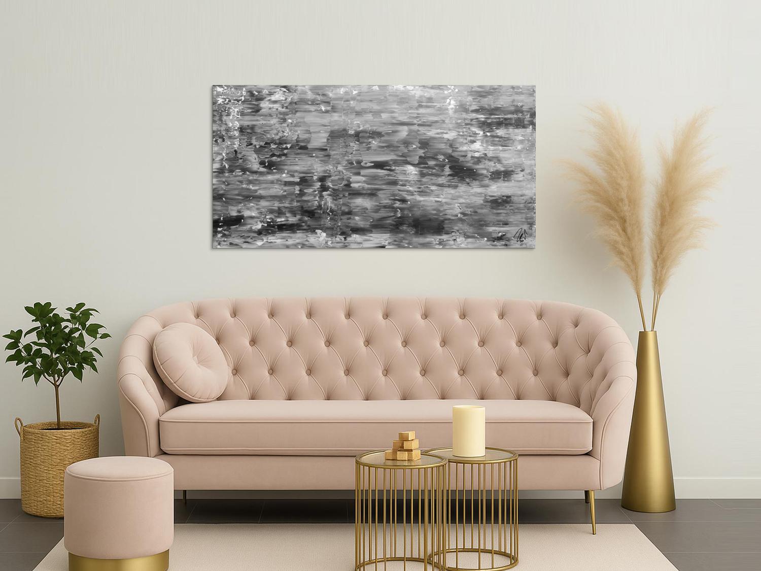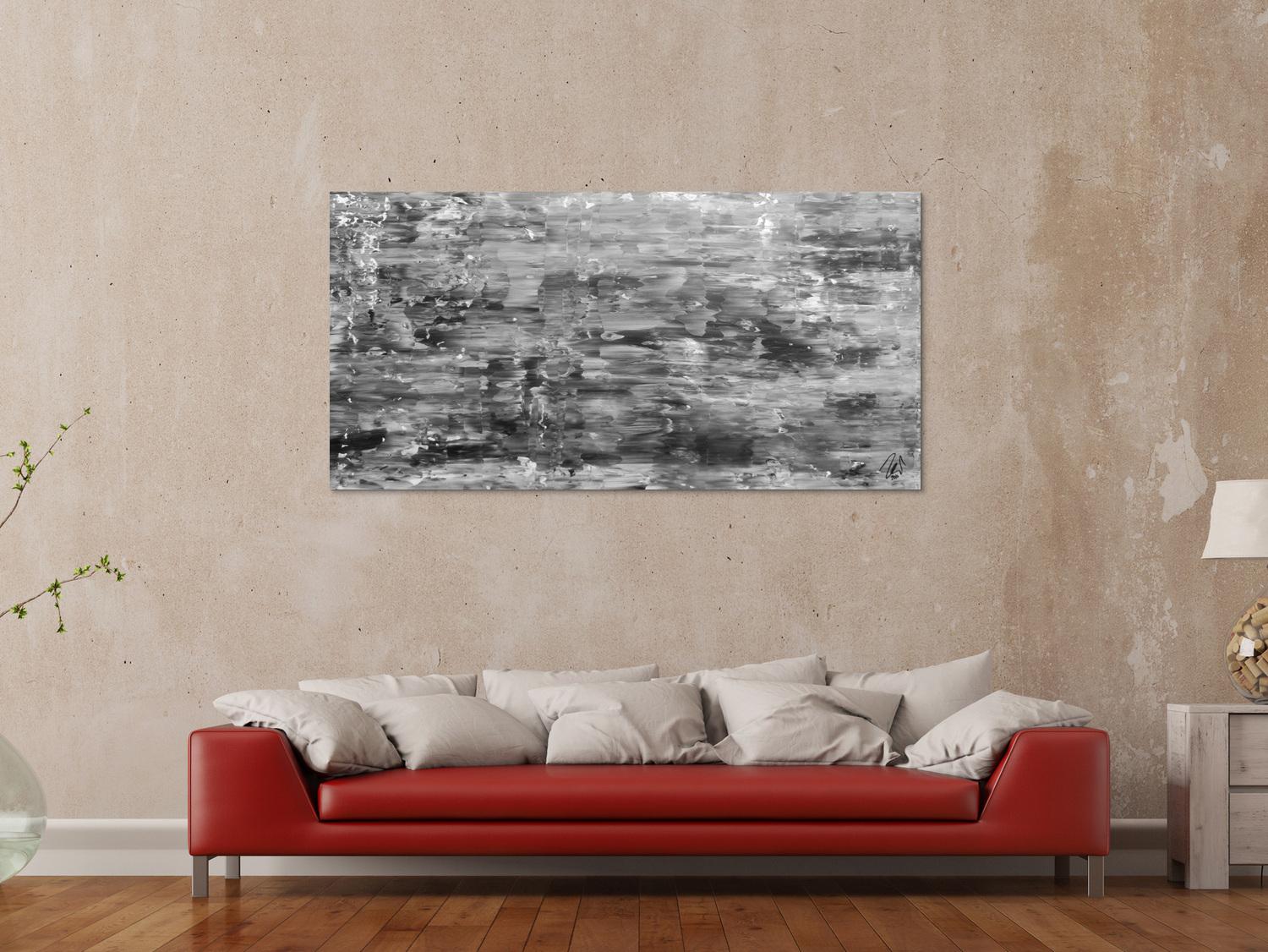 Abstraktes Acrylgemälde schlicht mondern in schwarz weiß grau