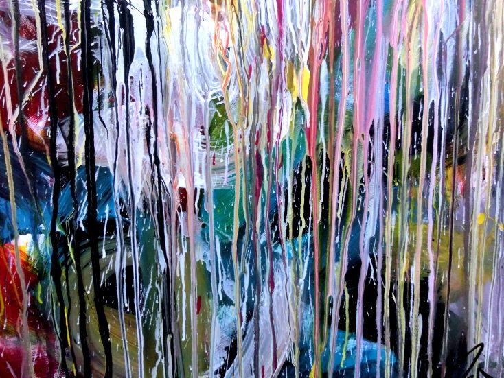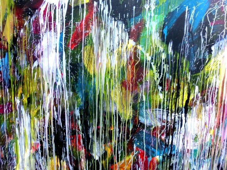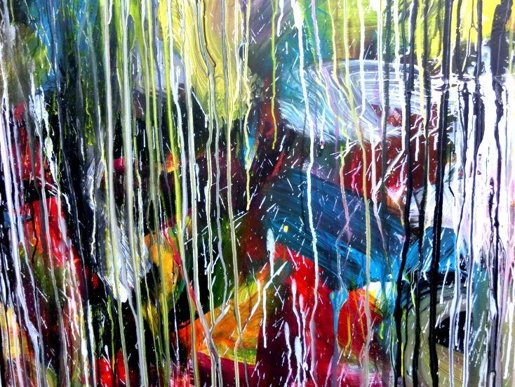 Abstraktes Acrylgemälde sehr bunt Mischtechnik Action Painting sehr modern